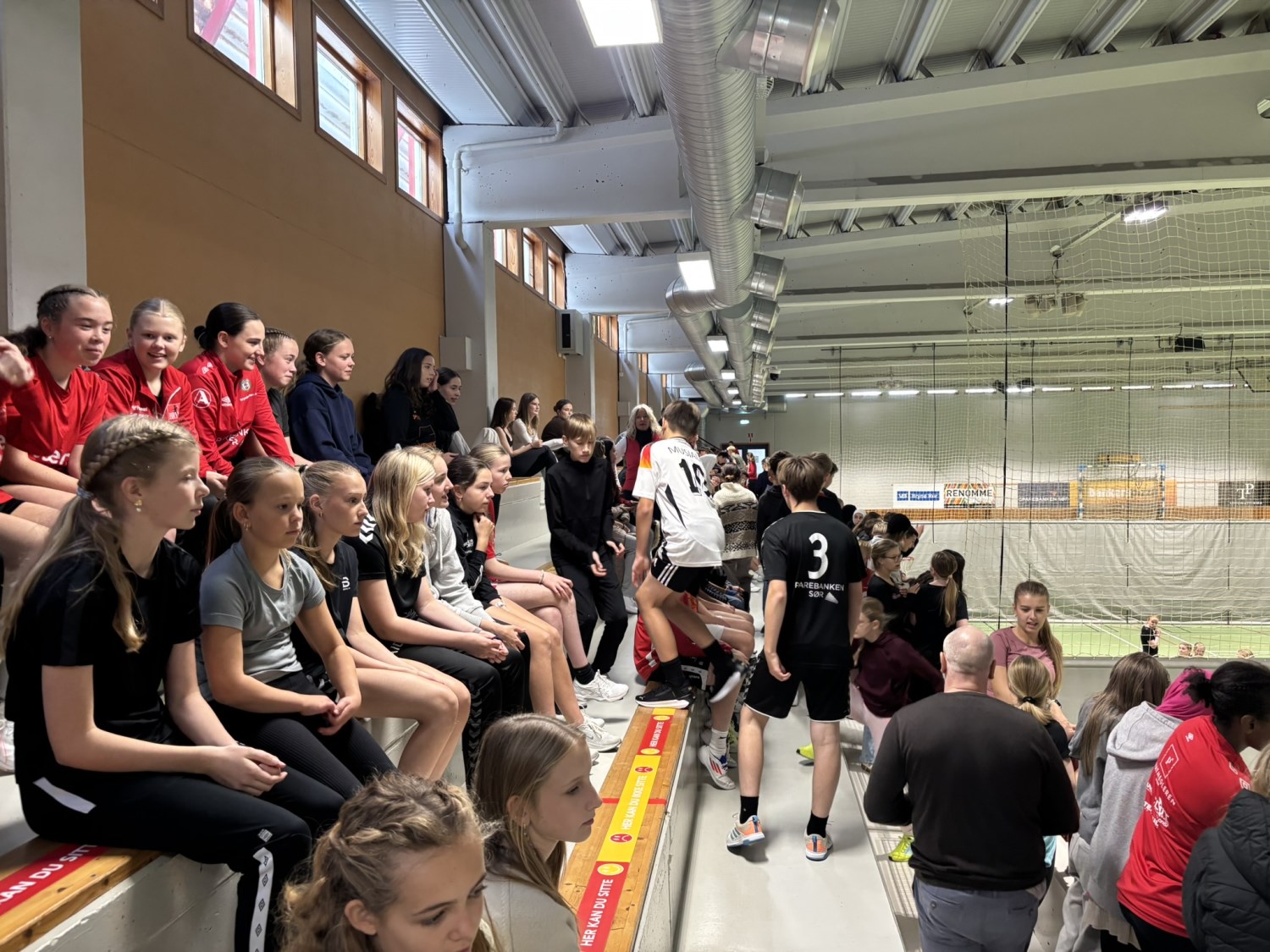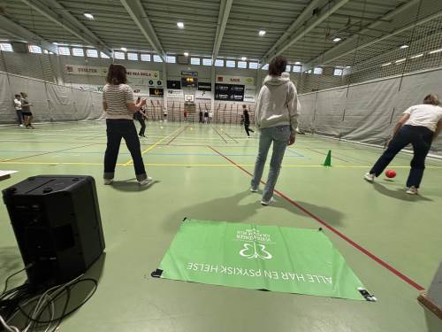 I veke 40 har me eit tverrfagleg fokus på psykisk helse i samband med Verdensdagen for psykisk helse. I år har elevrådet bestemt at slagordet skal vere #styrk fellesskapet, og dei har tatt initiativ til og planlagt ei kanonballturnering for heile skulen. Laga var sett saman på tvers av klassar og trinn, og alle elevane har vore med på eit lag. I dag gjekk det slag i slag med kampar i Timehallen, og fredag er det sluttspel med finale og kamp mellom vinnarlaget og lærarlaget. I bildegalleriet kan de sjå nokre glimt frå dagen.