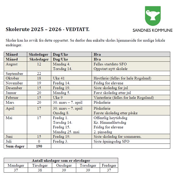 Skoleruten ligger også som en pdf-fil i høyremenyen på siden.