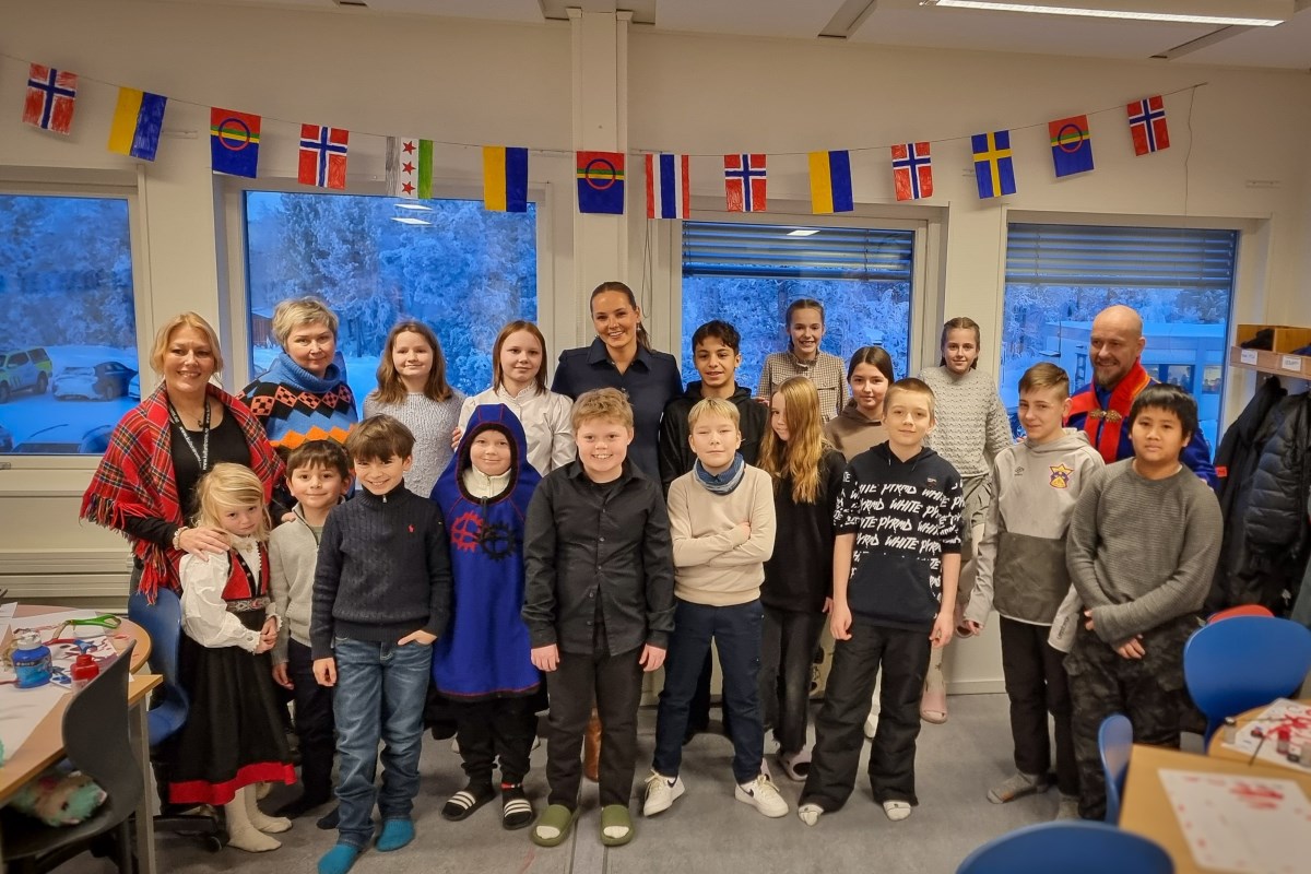 Foto: Prinsessen besøkte den norskspråklige klassen på barnetrinnet, som består av elever fra 2.-7. trinn
