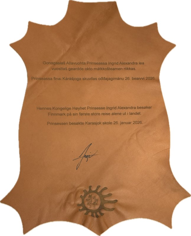Prinsessens signatur på sisti - garvet reinskinn.