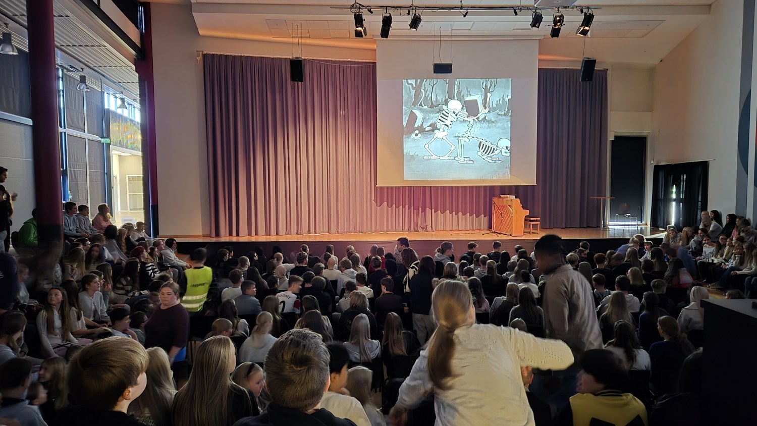 Flotte elevinnslag med trommer, piano og dans, presentasjon av elevrådet, pengegåve og kåring etter Sorpeløpet 2025, var noko av det som blei presentert under storsamlinga på Klepp ungdomsskule siste onsdag i oktober.