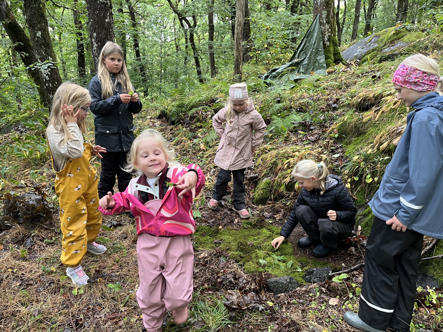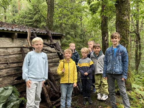 Det var første gang barna på 1. trinn var på sin faste uteskoleplass i skogen over veien. Det er noen år siden 5. trinn var her, så de fikk mange gode minner fra de var "små":) Faddergruppene fikk i oppgave å lage bondegård. De var gode til å samarbeide, og det var rene idyllen i en fantastisk fin skog.