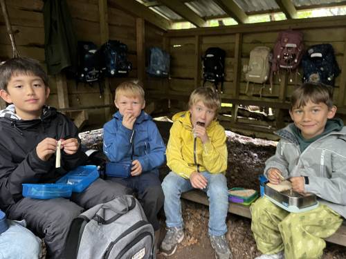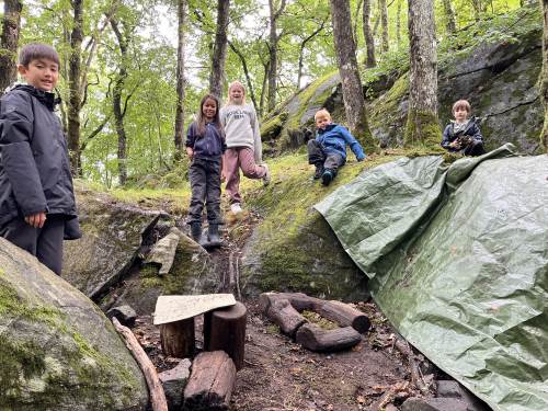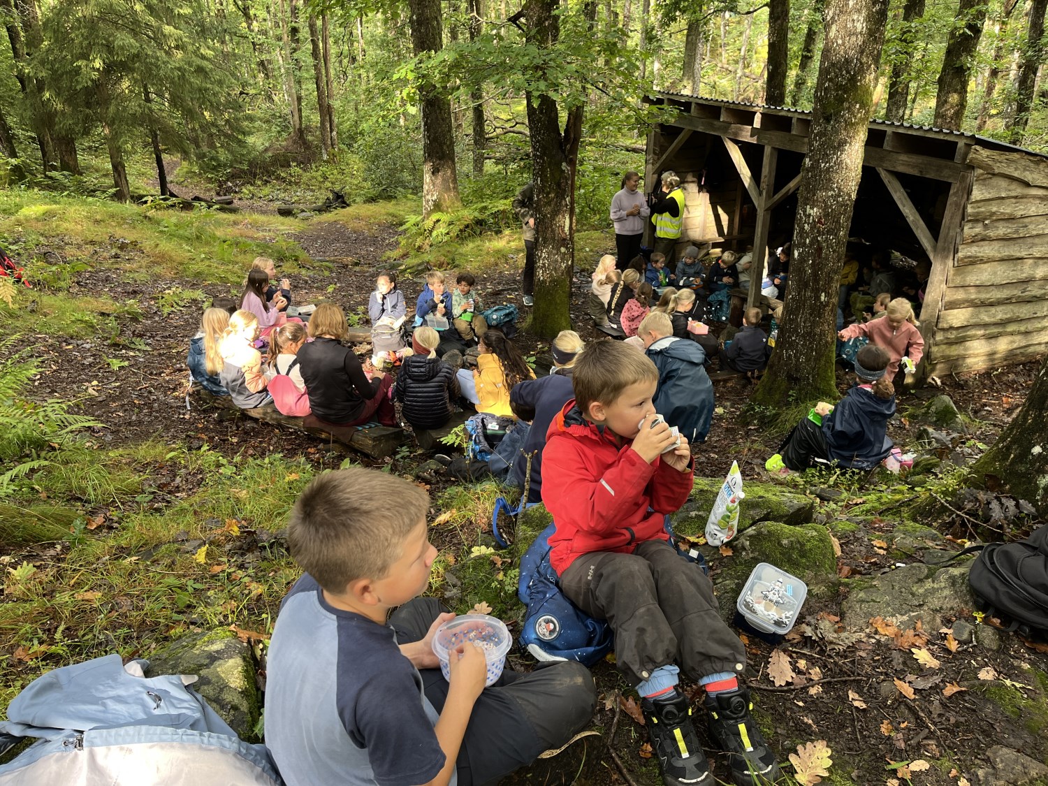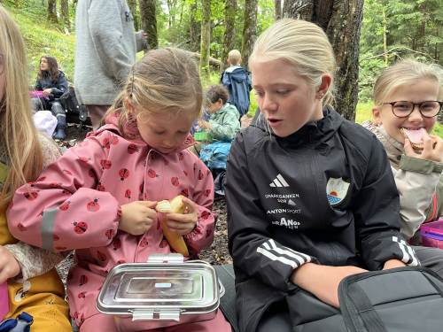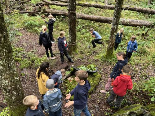 1. og 5. trinn hadde en veldig fin uteskole sammen.