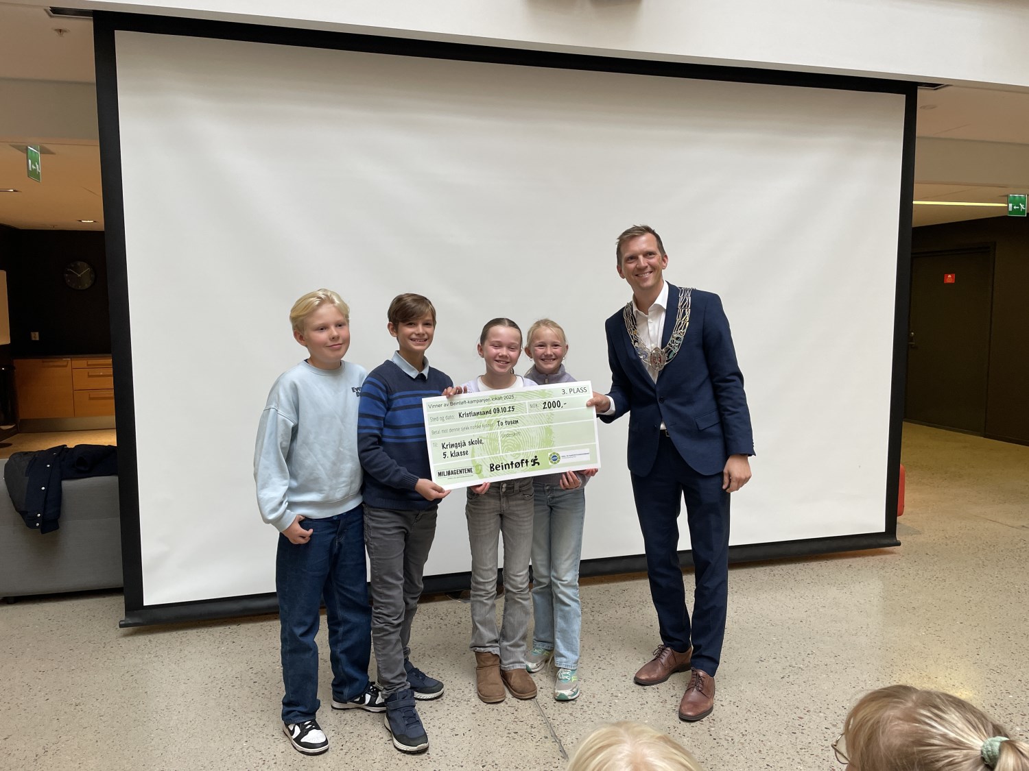 Da er Beintøft over for denne gangen. Vi gratulerer 5. trinn som beste trinn i sitt årskull i Kristiansand. Våre beintøffe elever vant 2000 kroner og fikk møte ordfører Mathias Bernander. Stor stas!