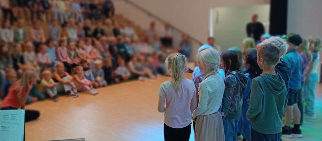 Når vi kommer så langt som til første skoledag, så vil elevene på 2. trinn synge for nye 1. trinn.