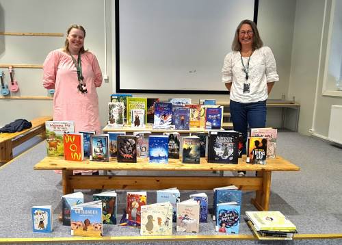 Et tredvetalls bøker sto igjen, lånt av Lova, da bibliotekarene takket for seg. Bøker som selvfølgelig er tilpasset aldersgruppene vi har på skolen. På Lovisenlund står høytlesning på timeplanen hver uke. Fremover vil alle Lova-elever få gleden av at nettopp bøkene som Hilde og Kaia presenterte blir lest høyt av voksne på akkurat deres trinn.