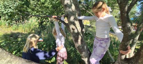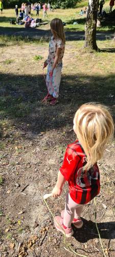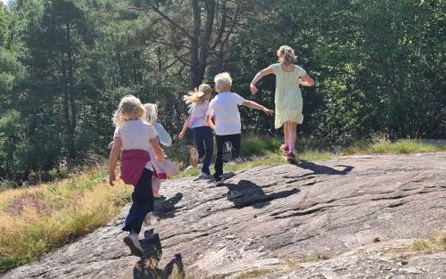 Koselig å spise god niste sammen i sola. Gøy å spille på instrumentene. Moro å finne modne bjørnebær. Mange voksne. Flotte timer for faddere og fadderbarn som blir mer og mer knyttet til hverandre!