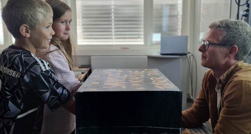 Sammen med læringspartner stakk vi ei hånd hver inn i den svarte sansekassa. Hva kom vi til å ta på? Kom vi til å klare å fortelle hvordan det vi tok på kjentes ut? Ville vi klare å gjette hva det var? Og til sist, ville vi få til å si det riktige ordenstallet på det vi tok på og skrive det på engelsk? Ville vi i det hele tatt tørre å prate engelsk hele tiden, og kun bruke et ord på norsk der vi ikke visste hva ordet var på engelsk? Her var det mye å tenke på samtidig..., men gjett hva? ALLE KLARTE ALT SAMMEN!