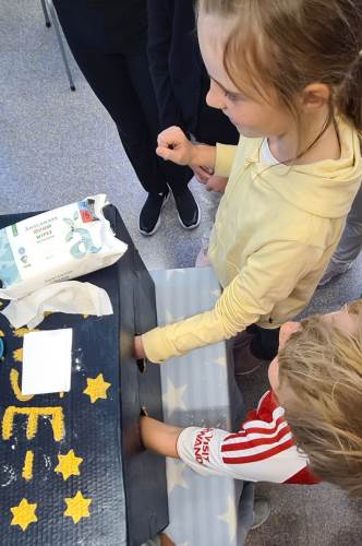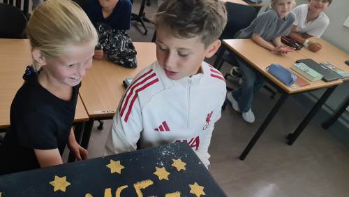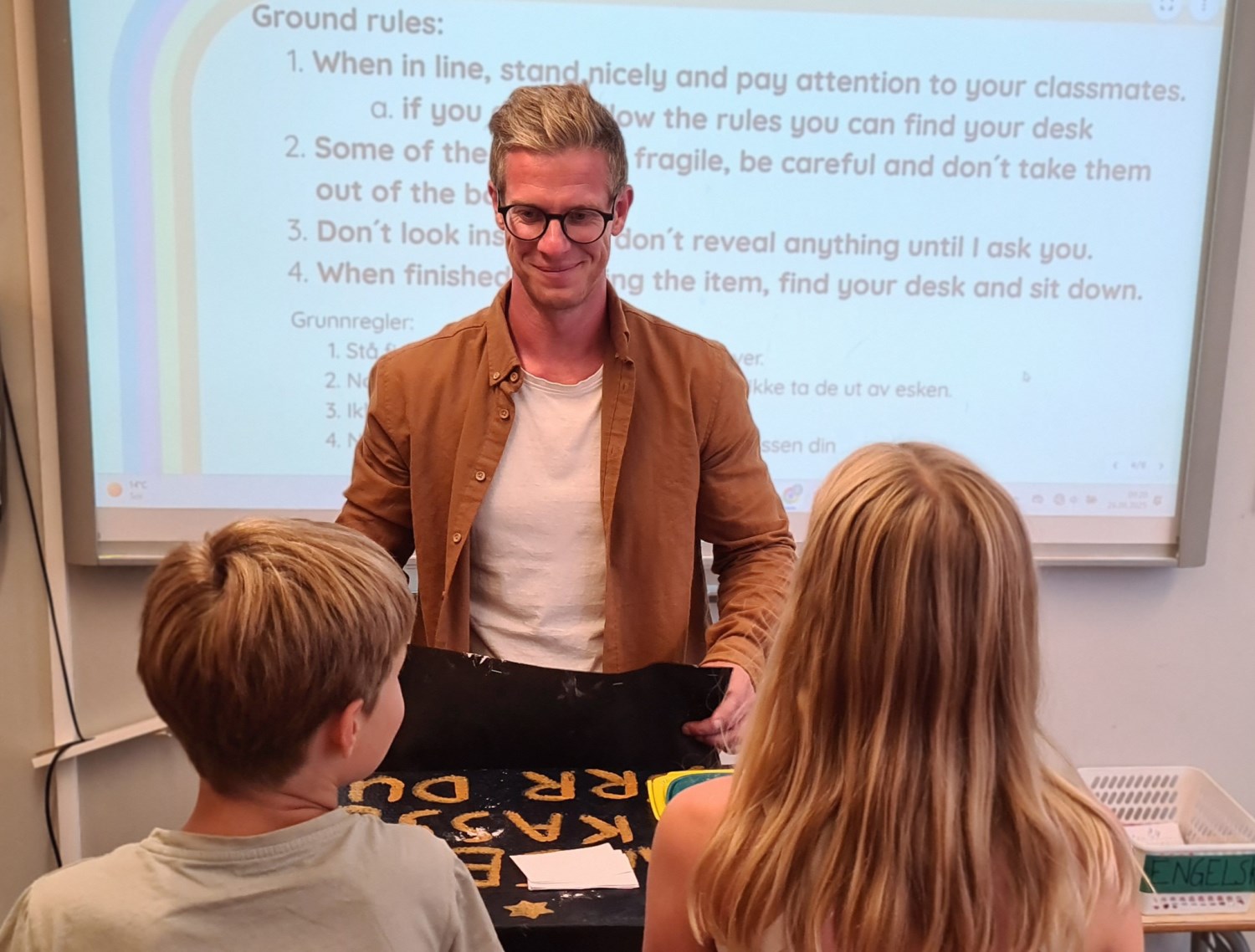 Det var ekstra spennende i engelsktimen i dag! Vi brukte sansekasse for å øve på ordenstallene uten å ane hva vi tok på i kassa...