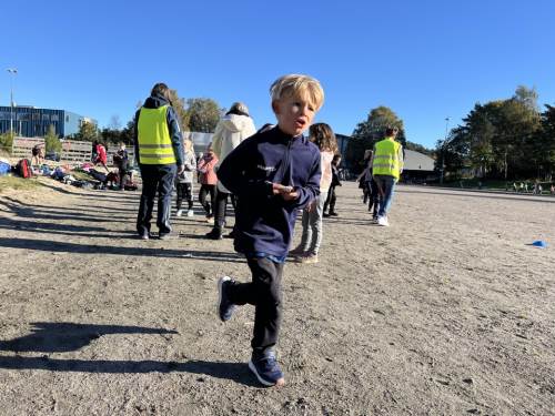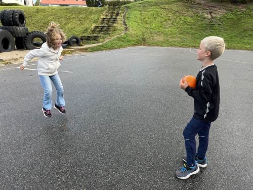 Vi har også gjort noen ting sammen med hele skolen. Vi har danset "Blime"-dansen i en full skolegård. Vi har også gjennomført Lova-joggen. Dette ble gjort på grusbanen ved KKG. Her løp elevene runder for å samle inn penger til Finns Fairway. Det var en kjempefin dag med godt humør, strålende sol og masse energi.