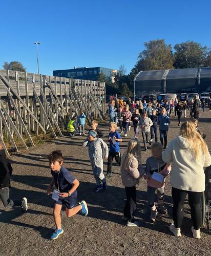 Med godt humør og fantastisk innsats jogget elevene på 1.- 4. trinn en haug av runder rundt Gimlebanen. 3. trinn løp 1203 runder til sammen i det nydelig høstværet!