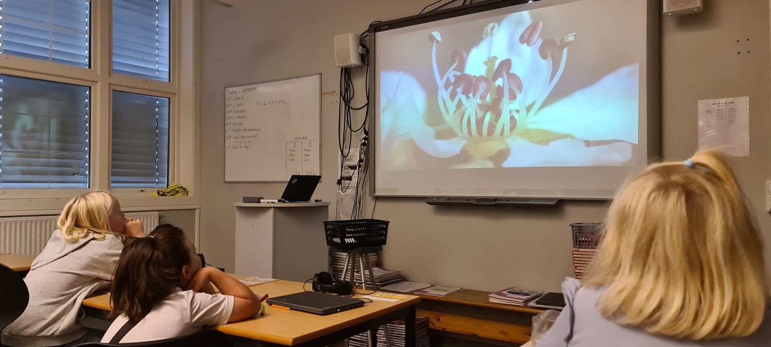 Fra skolestart og frem til nå har vi jobbet med blomstens oppbygning, pollinering, hypoteser og forsøk, fotosyntesen og klorofyll i naturfag.