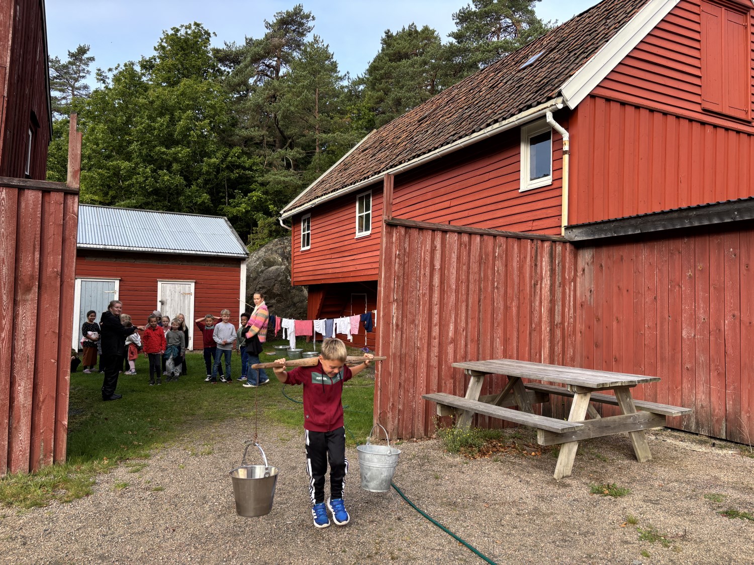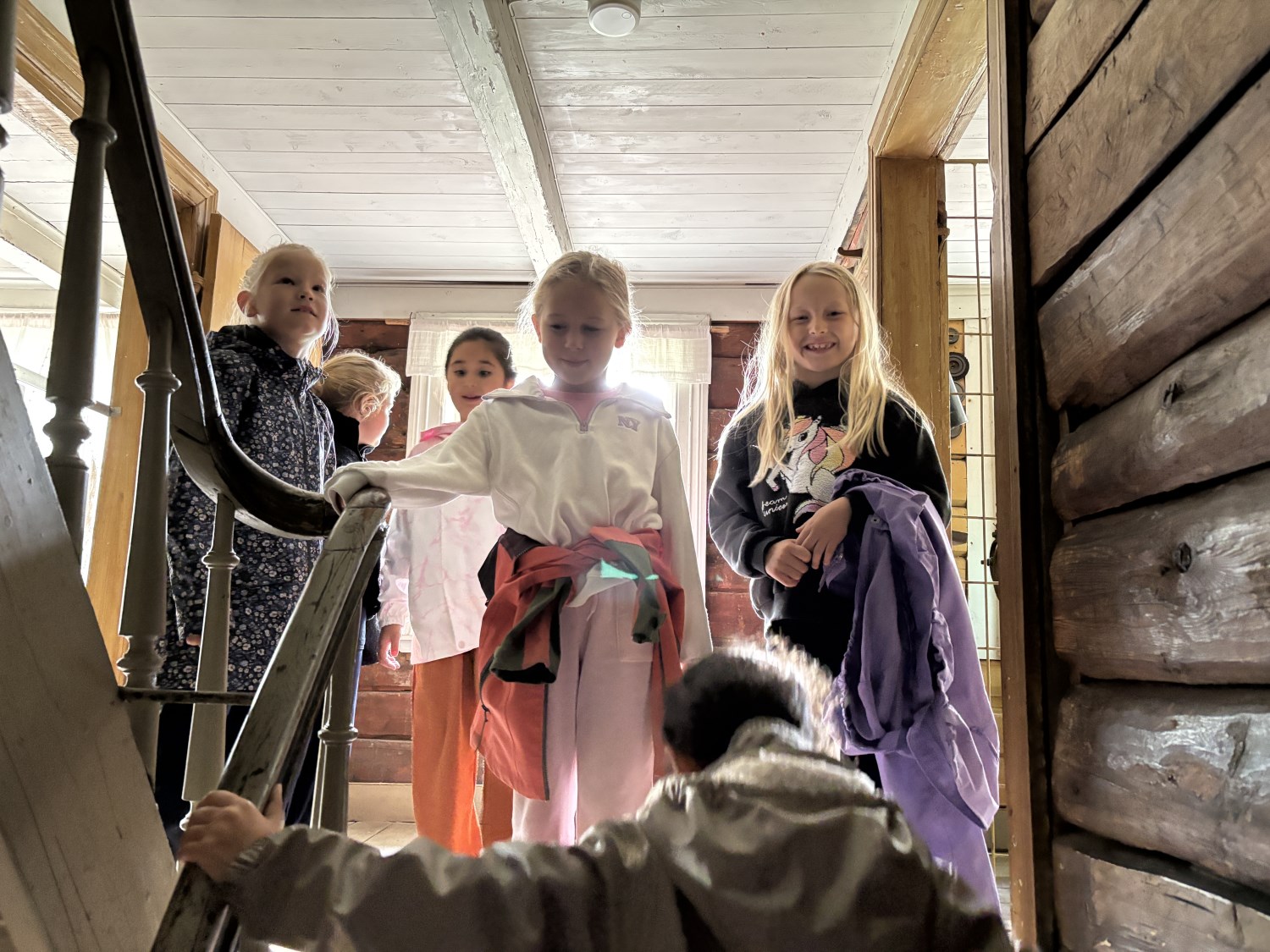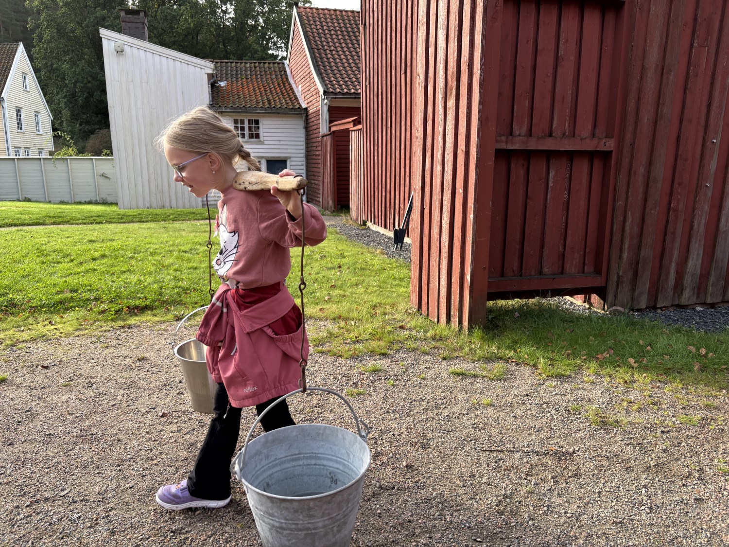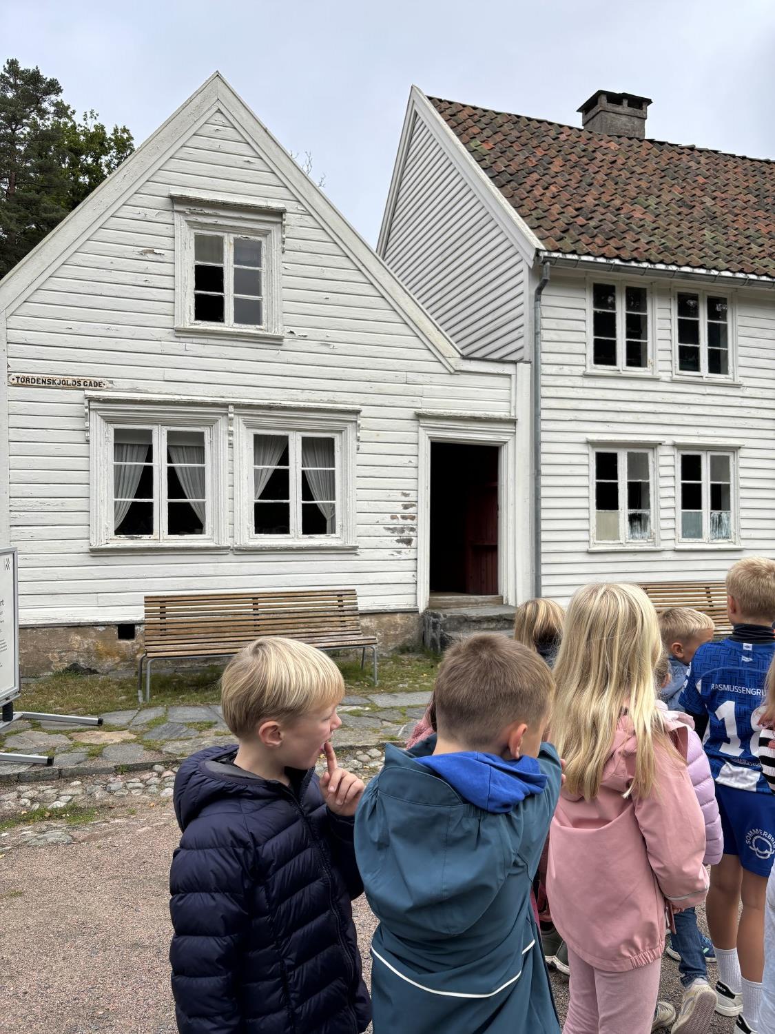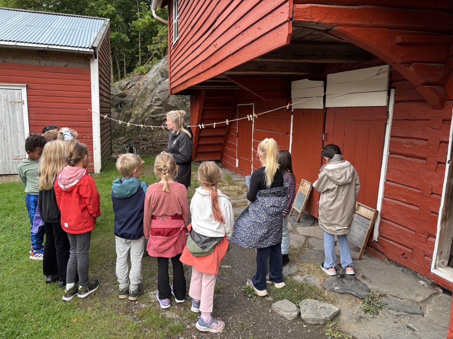 Som en førinnlæring til «vi i verden»-temaet, besøkte vi Vest-Agder museet på Kongsgård rett før høstferien. Der fikk elevene et innblikk i hvordan det var å leve i Kristiansand i gamledager.