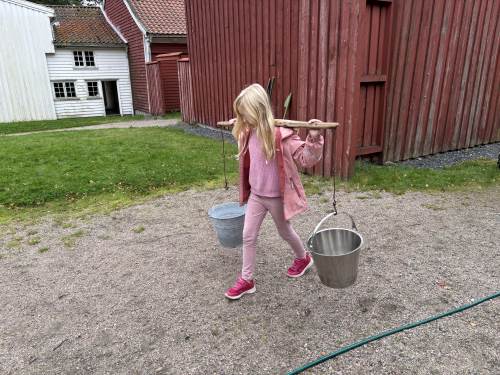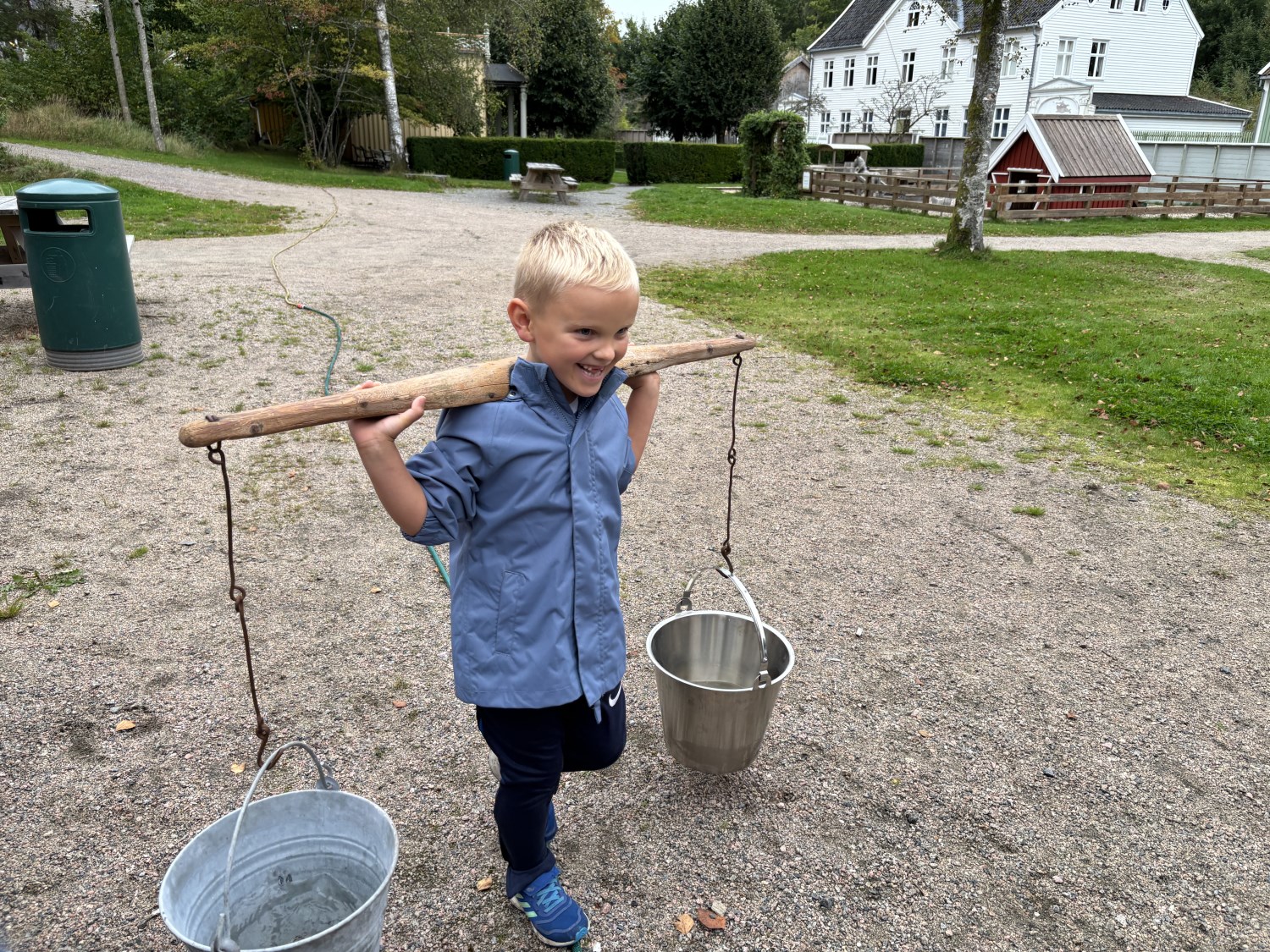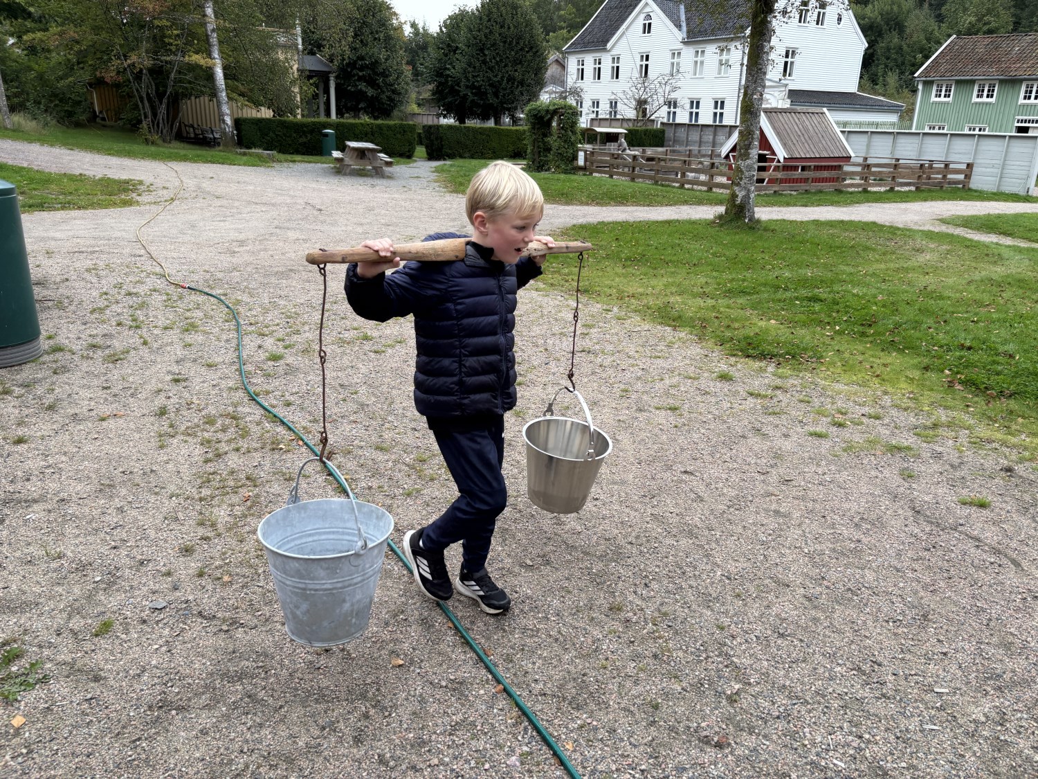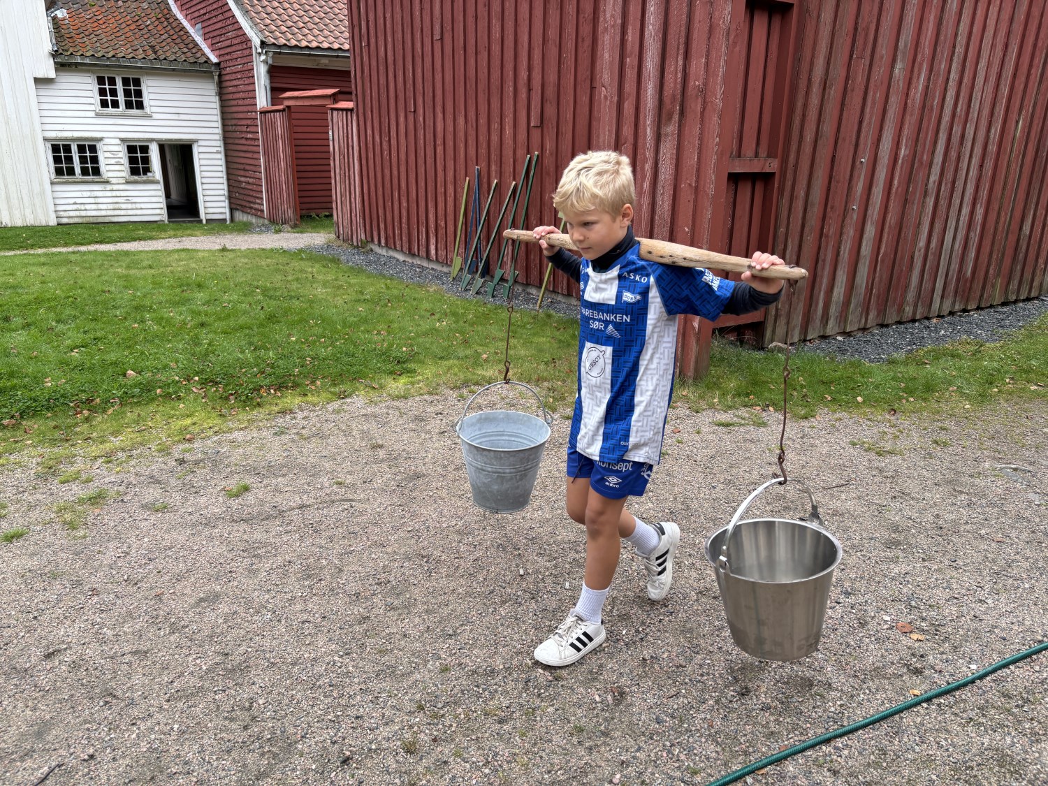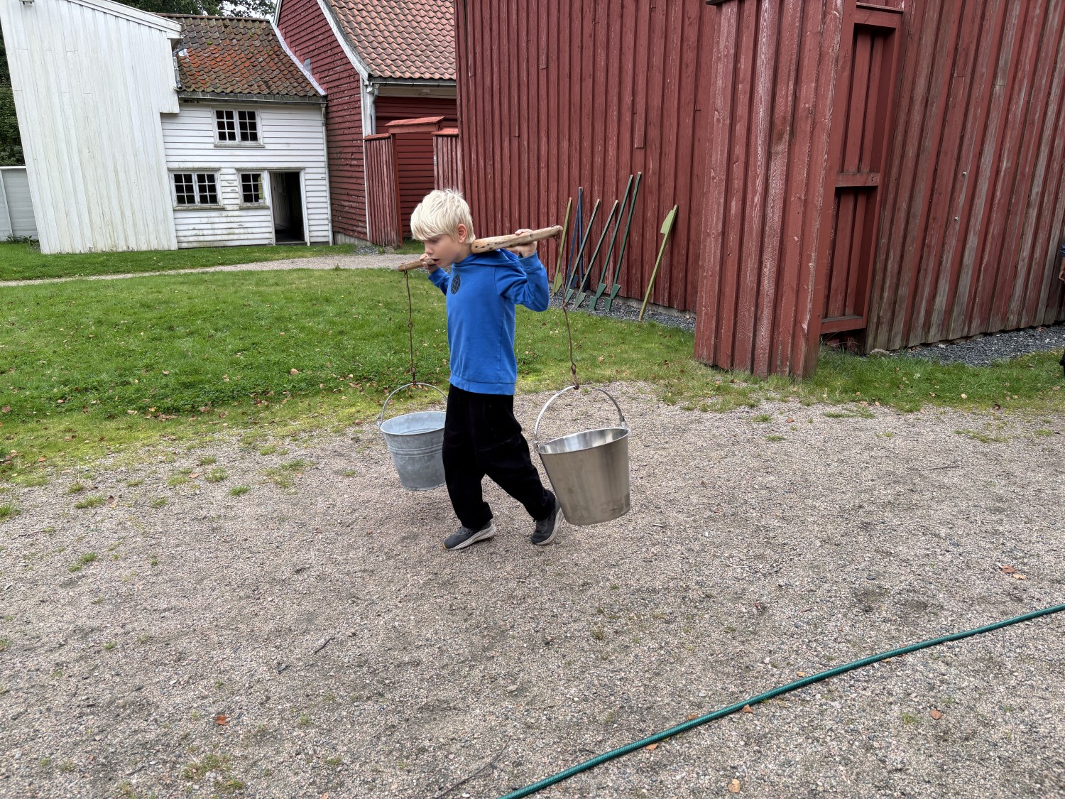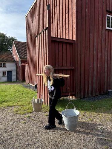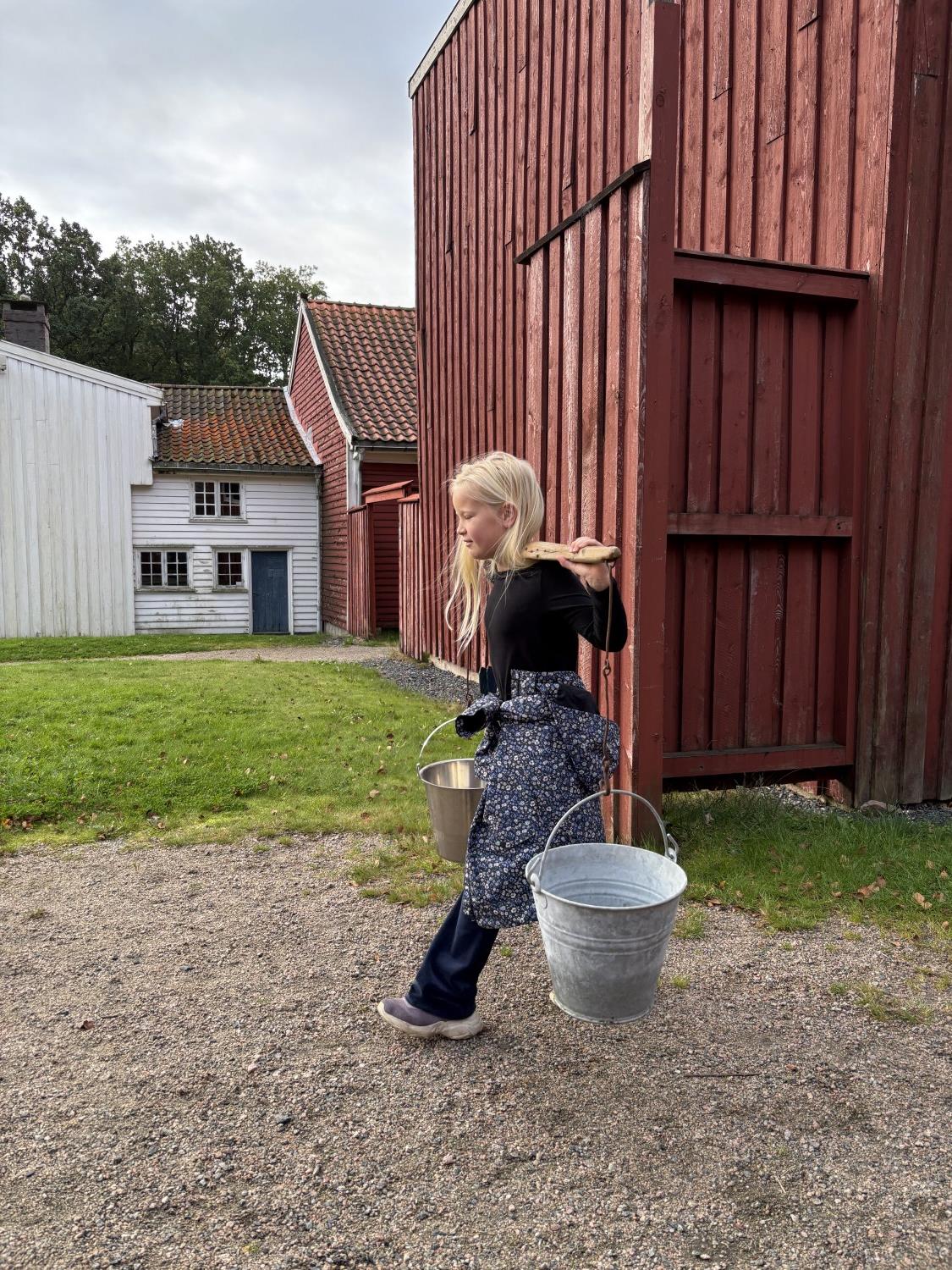 Som en førinnlæring til «vi i verden»-temaet, besøkte vi Vest-Agder museet på Kongsgård rett før høstferien. Der fikk elevene et innblikk i hvordan det var å leve i Kristiansand i gamledager.