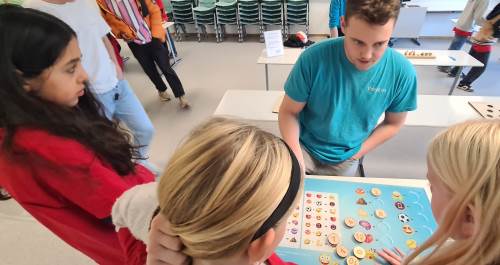 Under foredraget om hjerneforskning fikk vi høre om nevroner, og at vi har så mange i hjernen at vi knapt får til å si antallet. Vi opplevde også hvordan hjernen kan "lure oss" til å se farger når de egentlig ikke er der...
