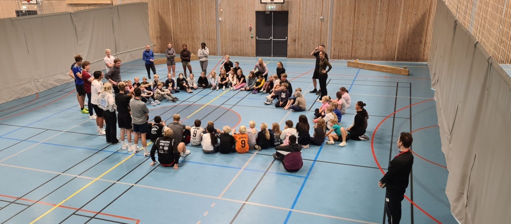 Iherdig innsats og høyt aktivitetsnivå med innebandy og basketball i kroppsøving.