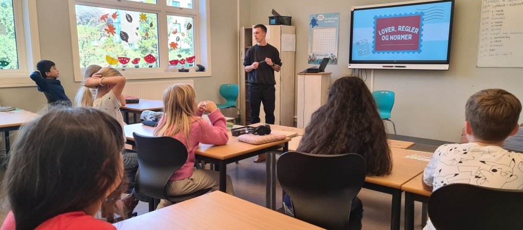 Hva er forskjellen på en lov, en regel og en norm? Elevene reflekterte over begrepene og sorterte ulike påstander innunder riktig begrep.