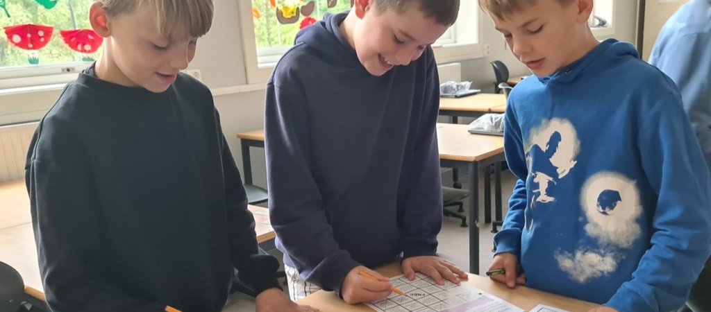 Torsdag gikk vi rundt i skolegården og fant poster med ulike spørsmål på som vi svarte på i mindre grupper.