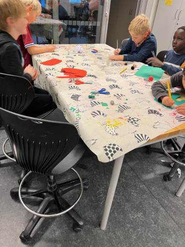 Juleførebuingane er godt i gang på SFO! Barna lagar pynt, syng songar og neste veke vert det pepperkakebaking.