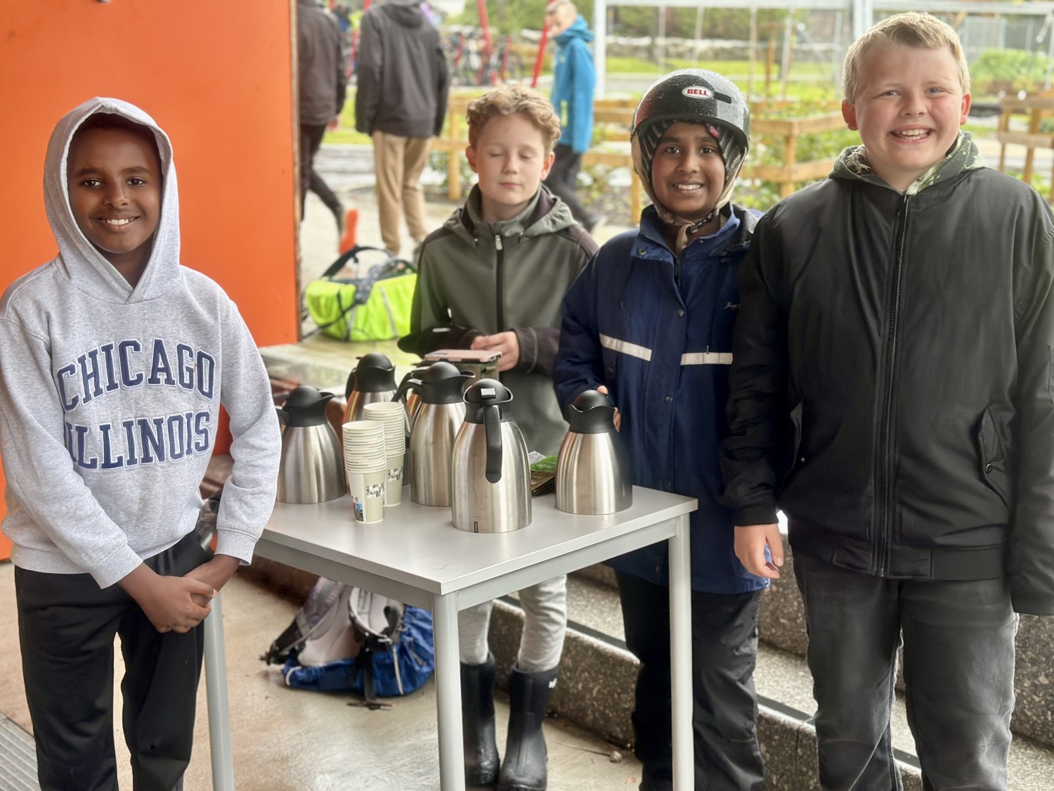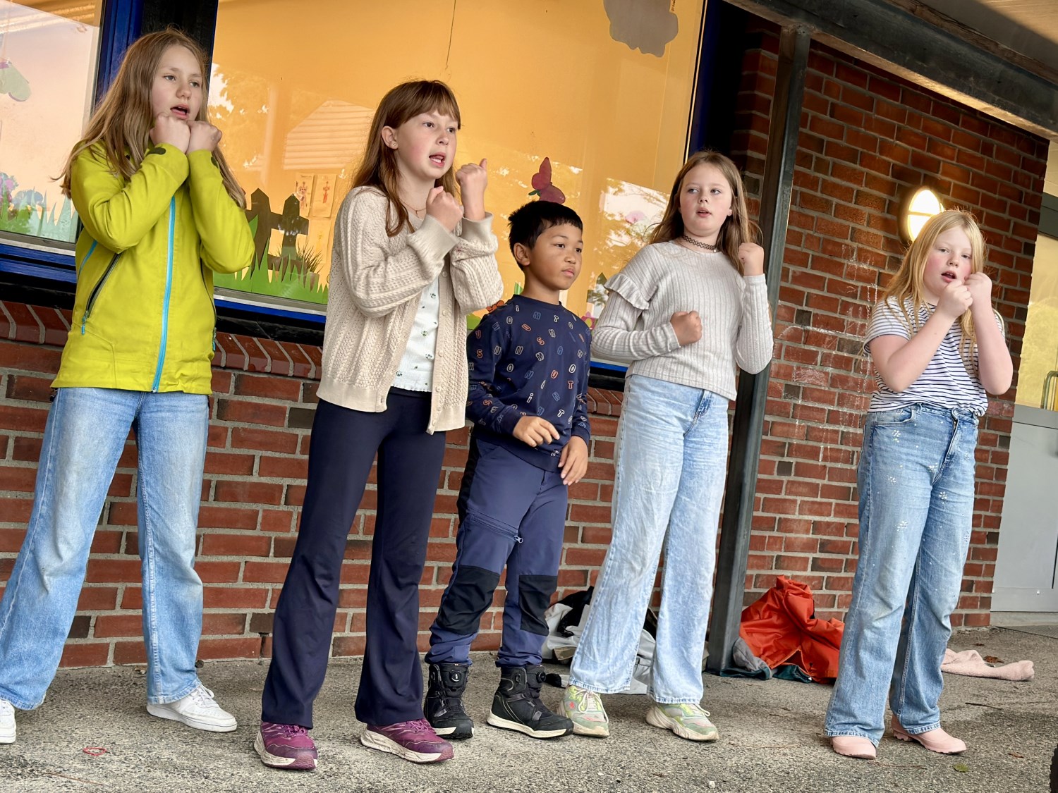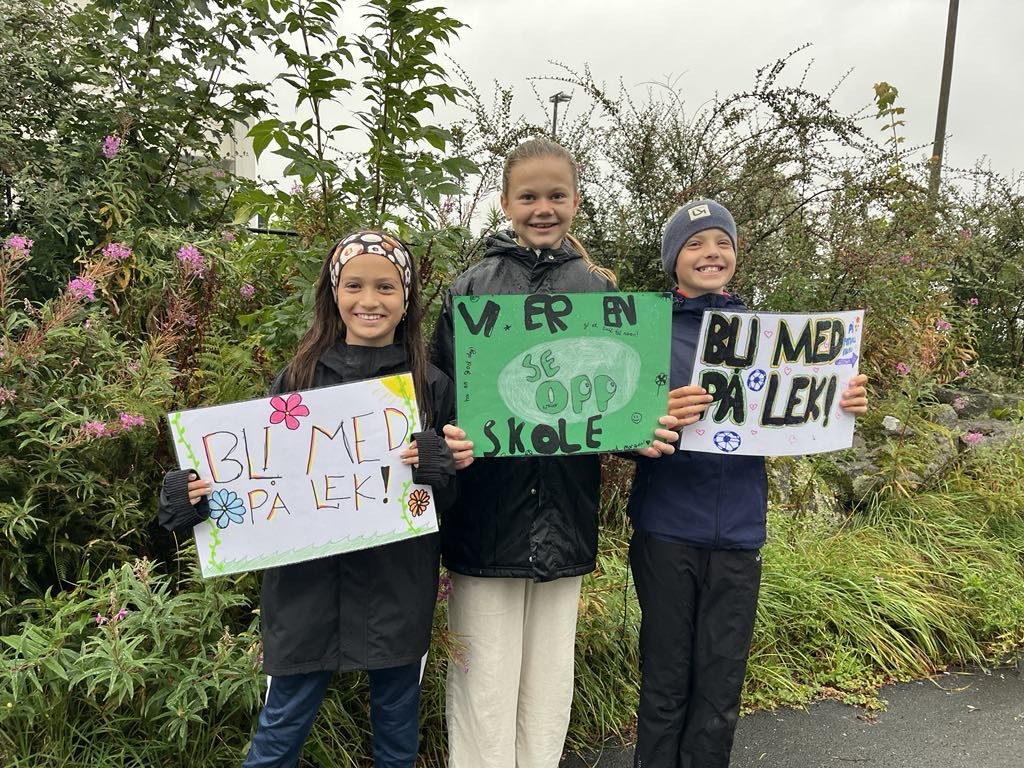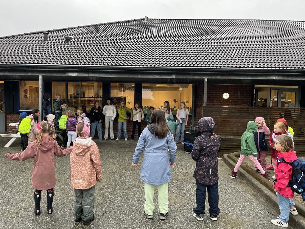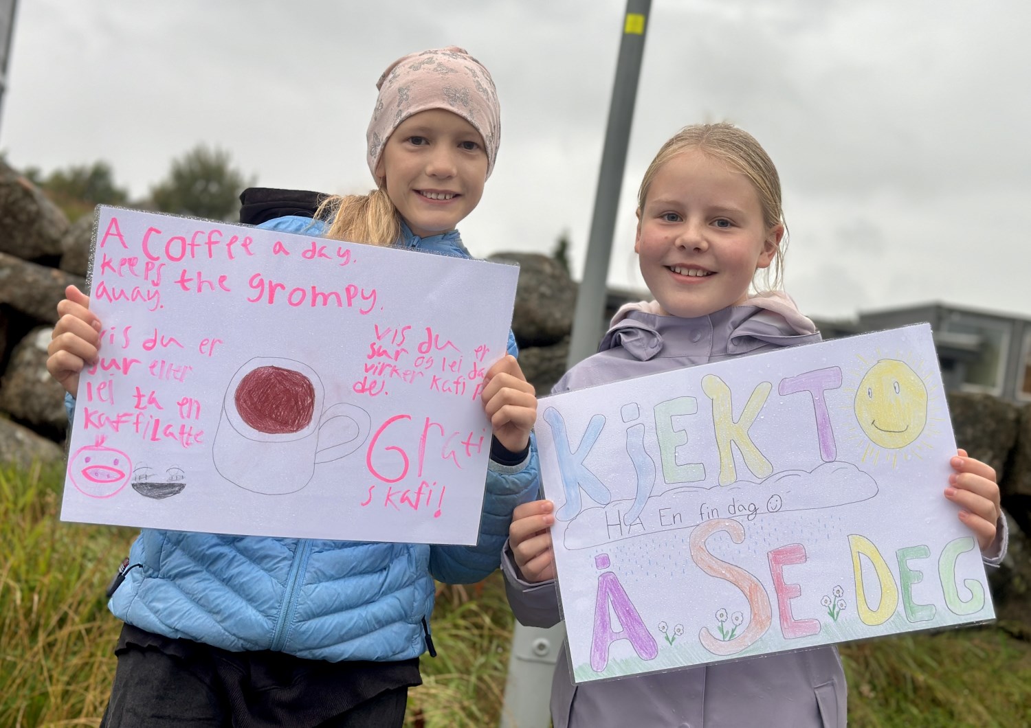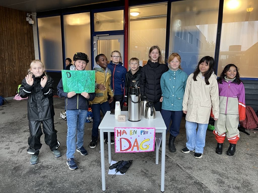 Hvordan kan vi glede de andre på skolen en tidlig høstdag? Her hadde elevene på 6.trinn mange gode forslag. Vekkerklokka ble stilt ekstra tidlig denne dagen for å gjøre stas på de rundt oss.