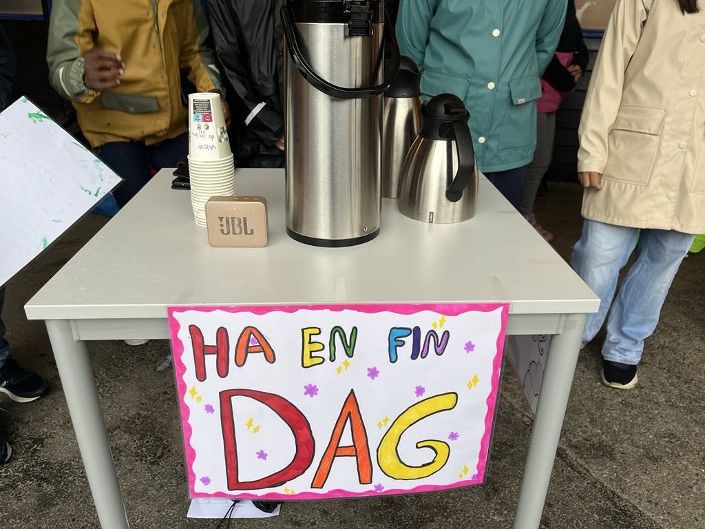 Det ble servert kaffe til de ansatte på skolen, samt til foreldre i Sandvedhaugen barnehage og Sandved barnehage. Det ble spilt musikk, vist frem fine plakater, paraplytunell, disko i undergrunnen, lek på kunstgressbanen og dans utenfor 1.trinn. Kjekt å se så mye liv å røre i høstværet.