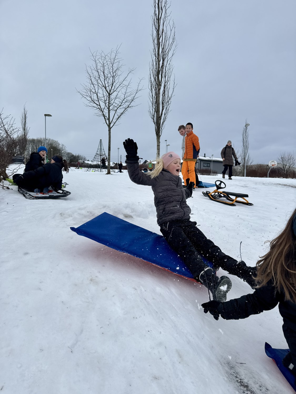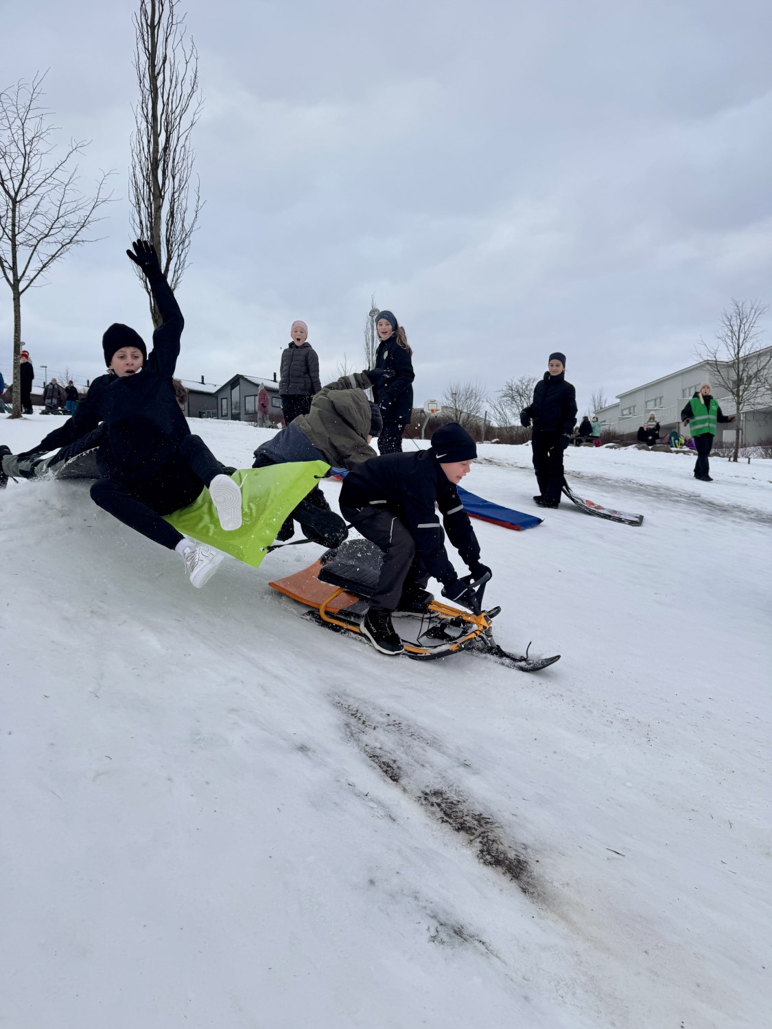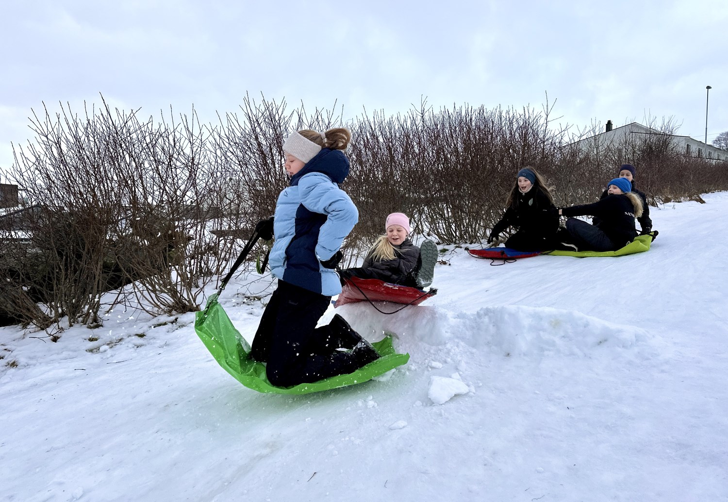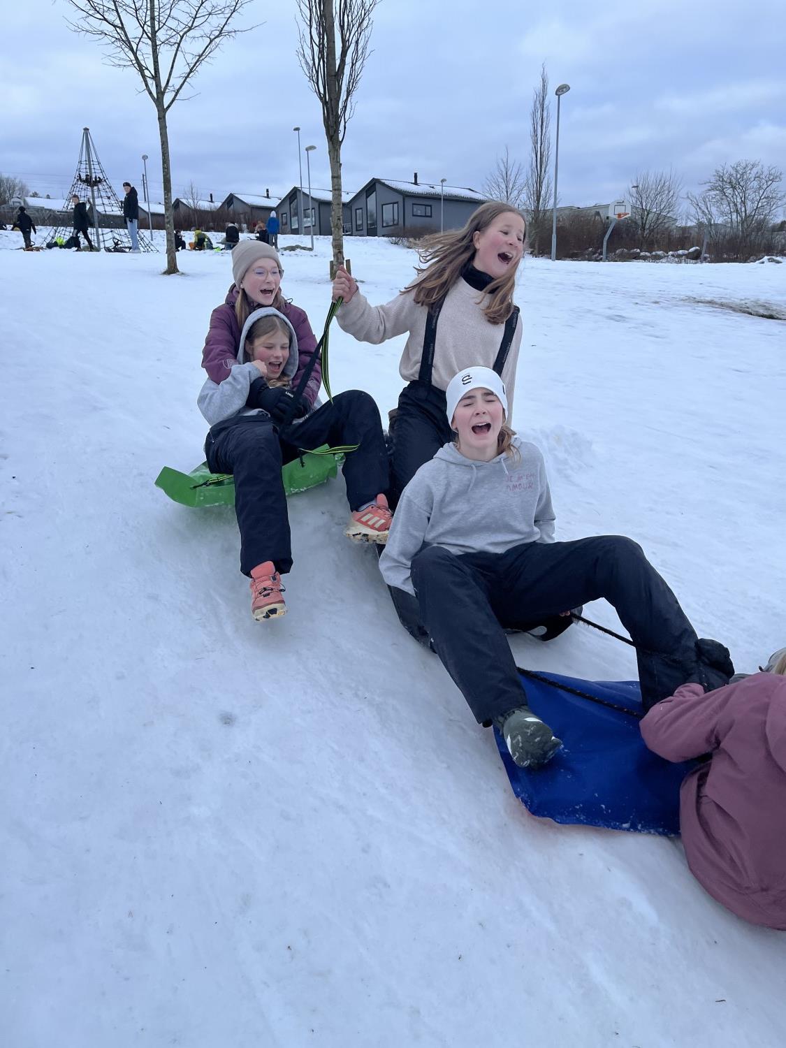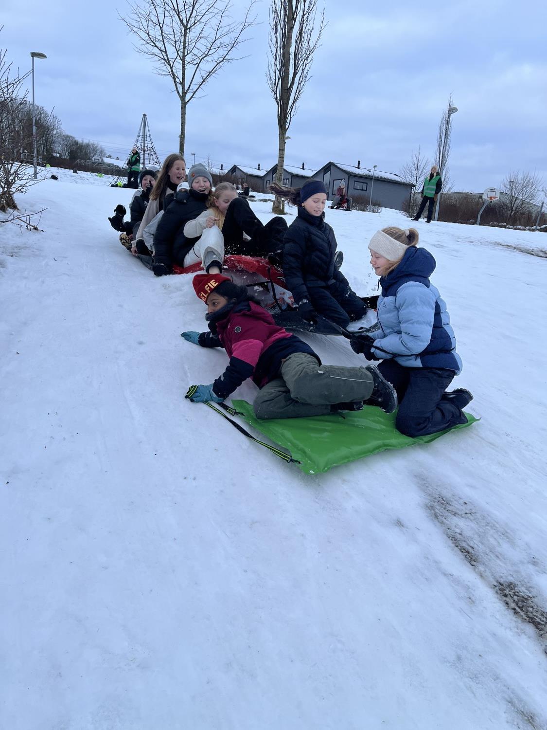 Kjekt å se kreative "tog"løsninger, modige og glade elever. Aking er gøy og en god treningsform!