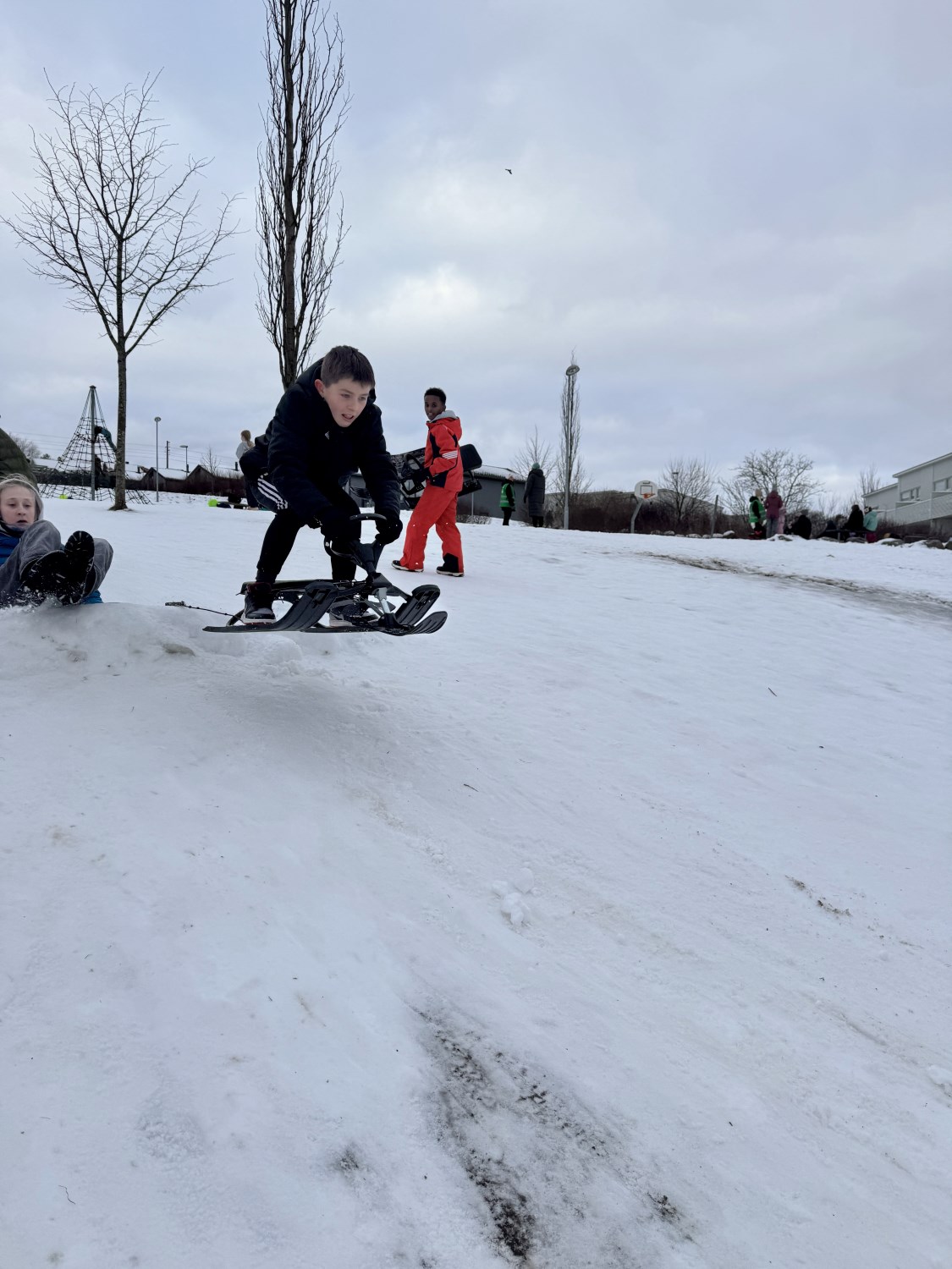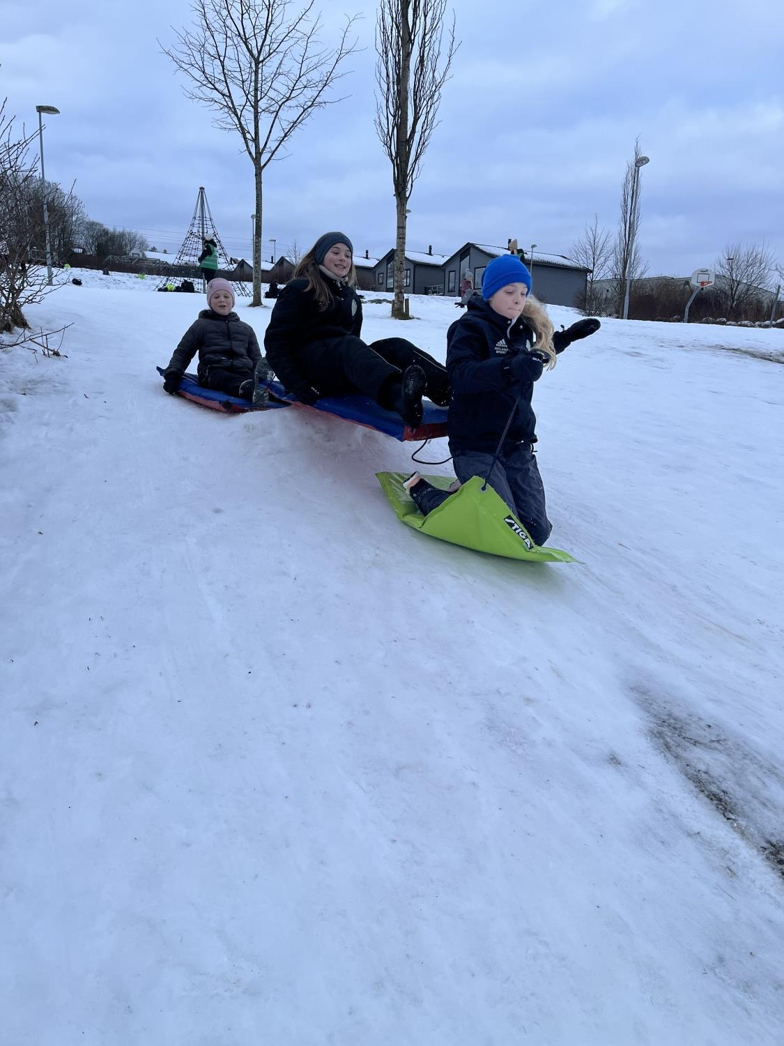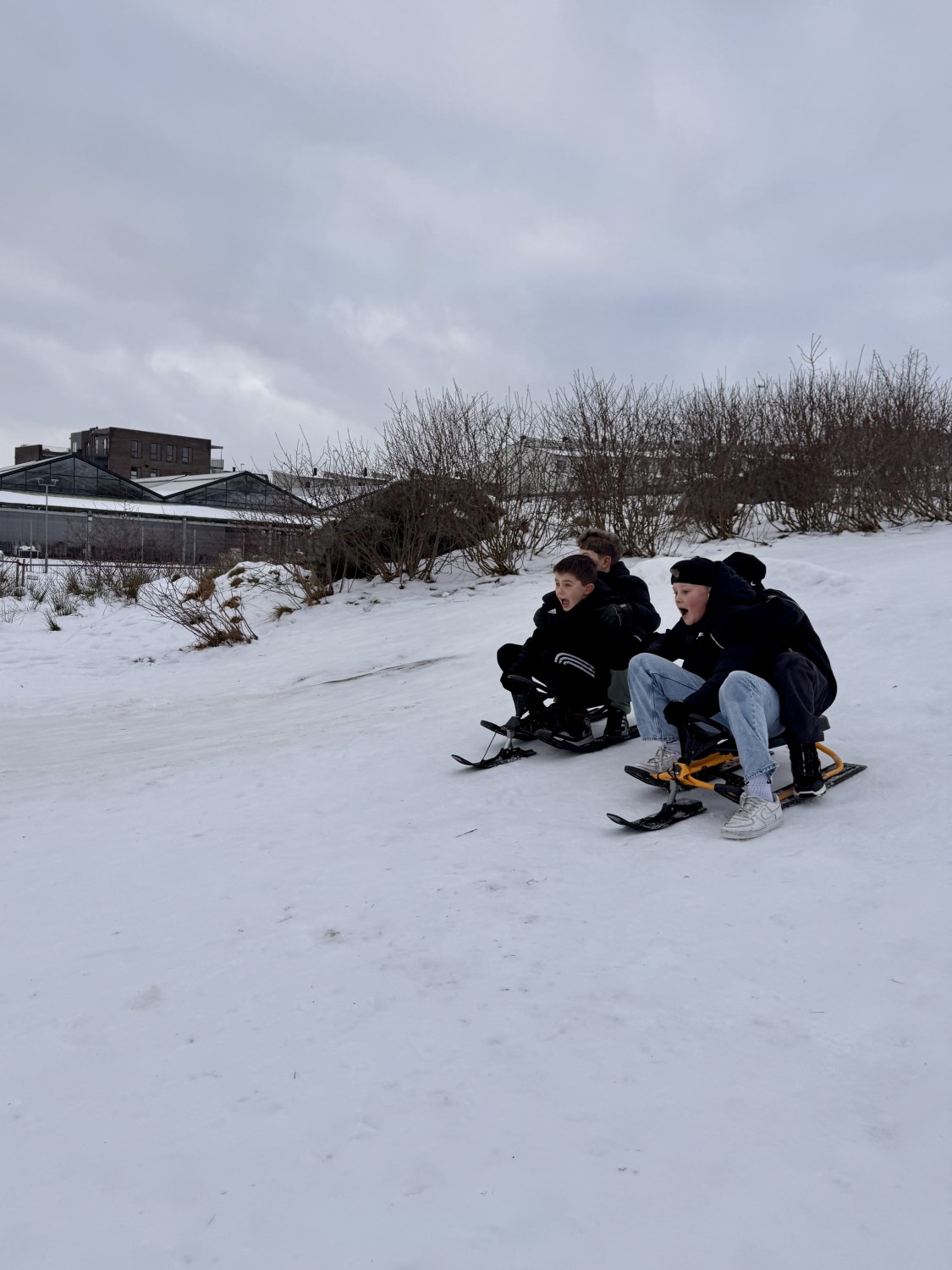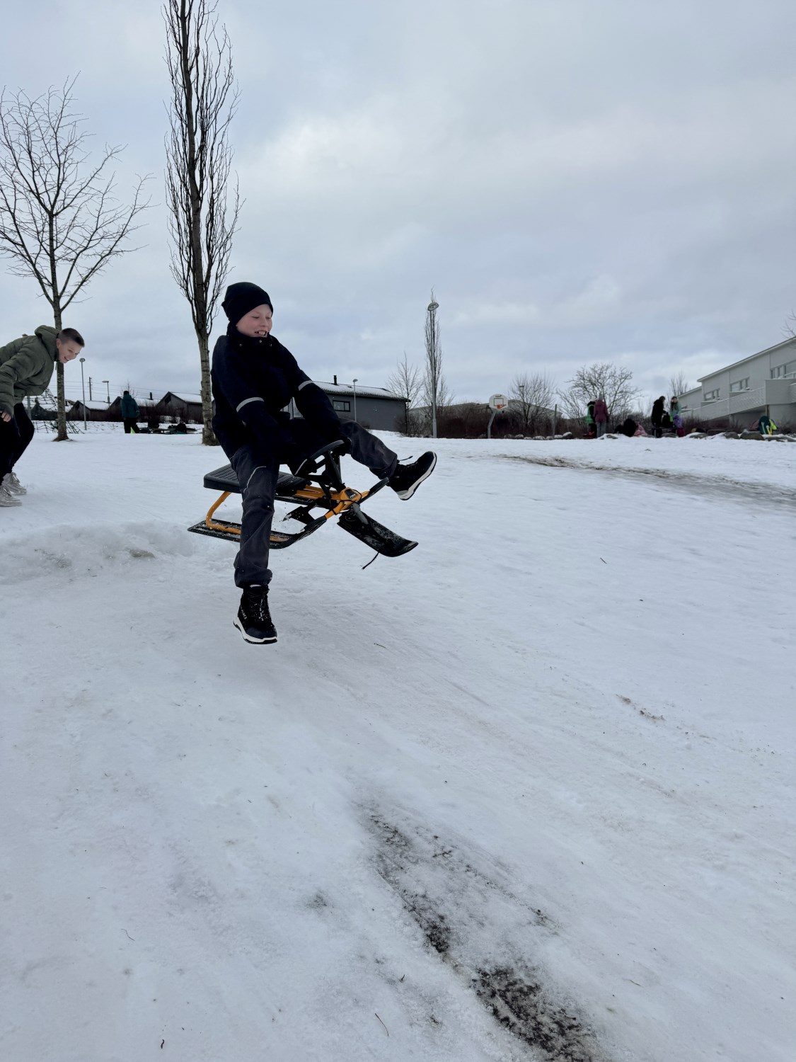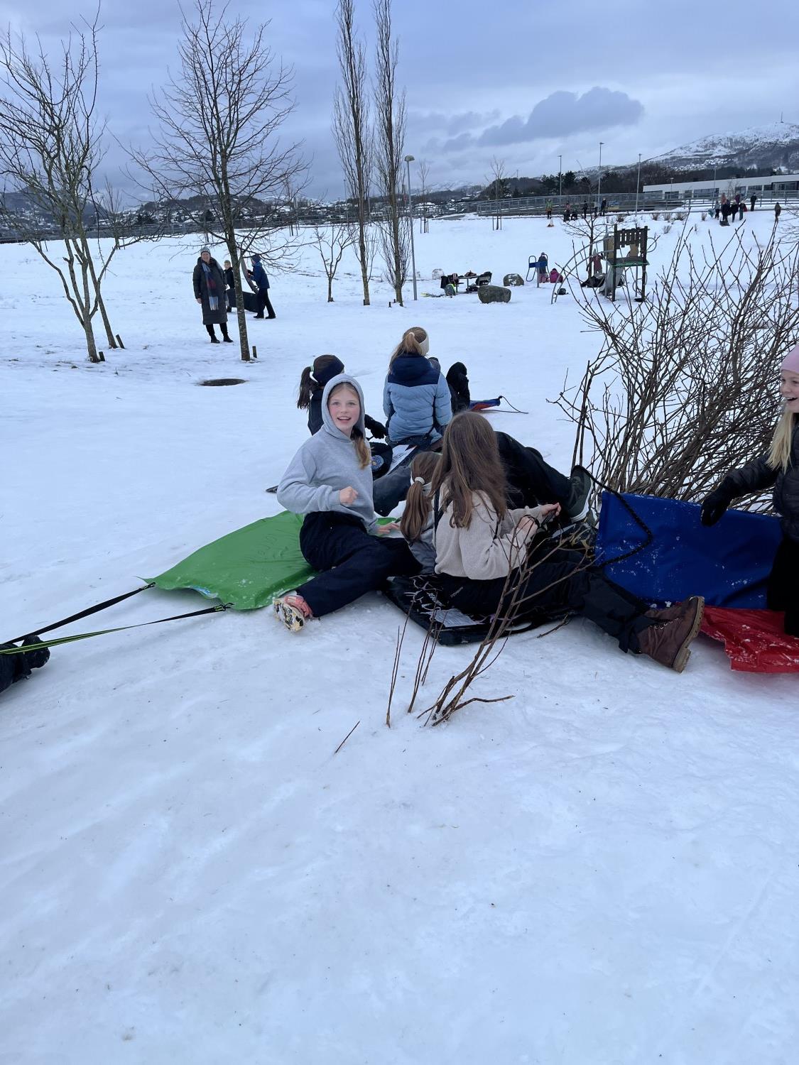 Kjekt å se kreative "tog"løsninger, modige og glade elever. Aking er gøy og en god treningsform!