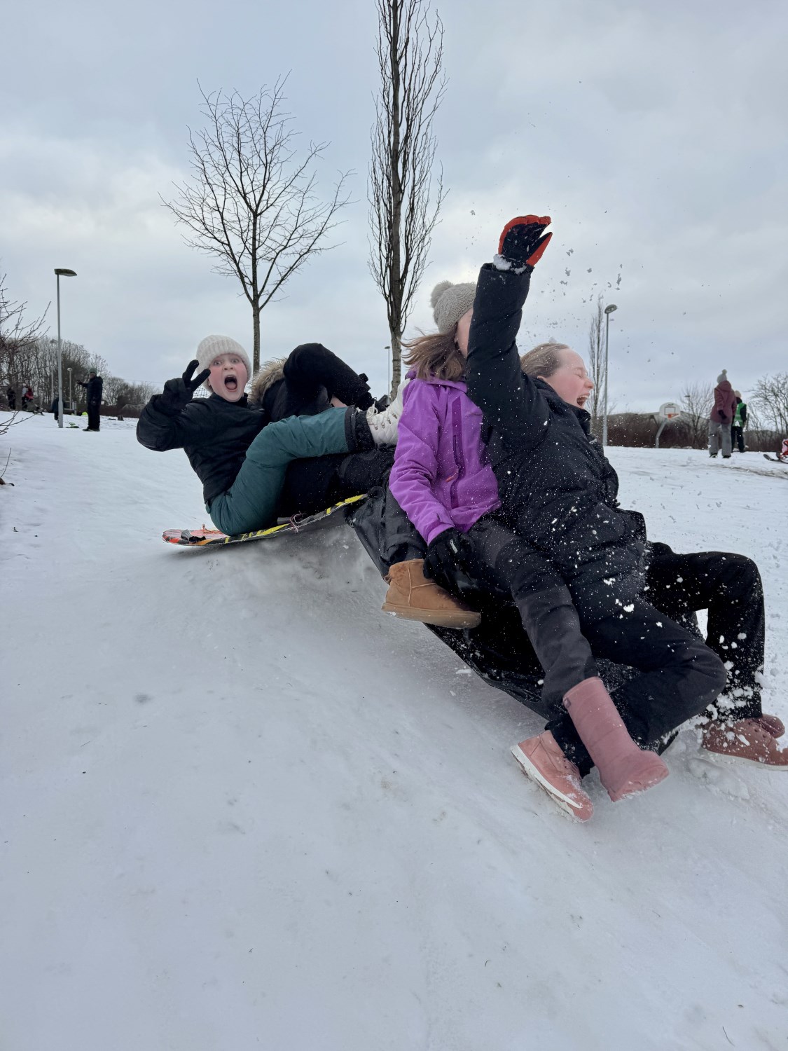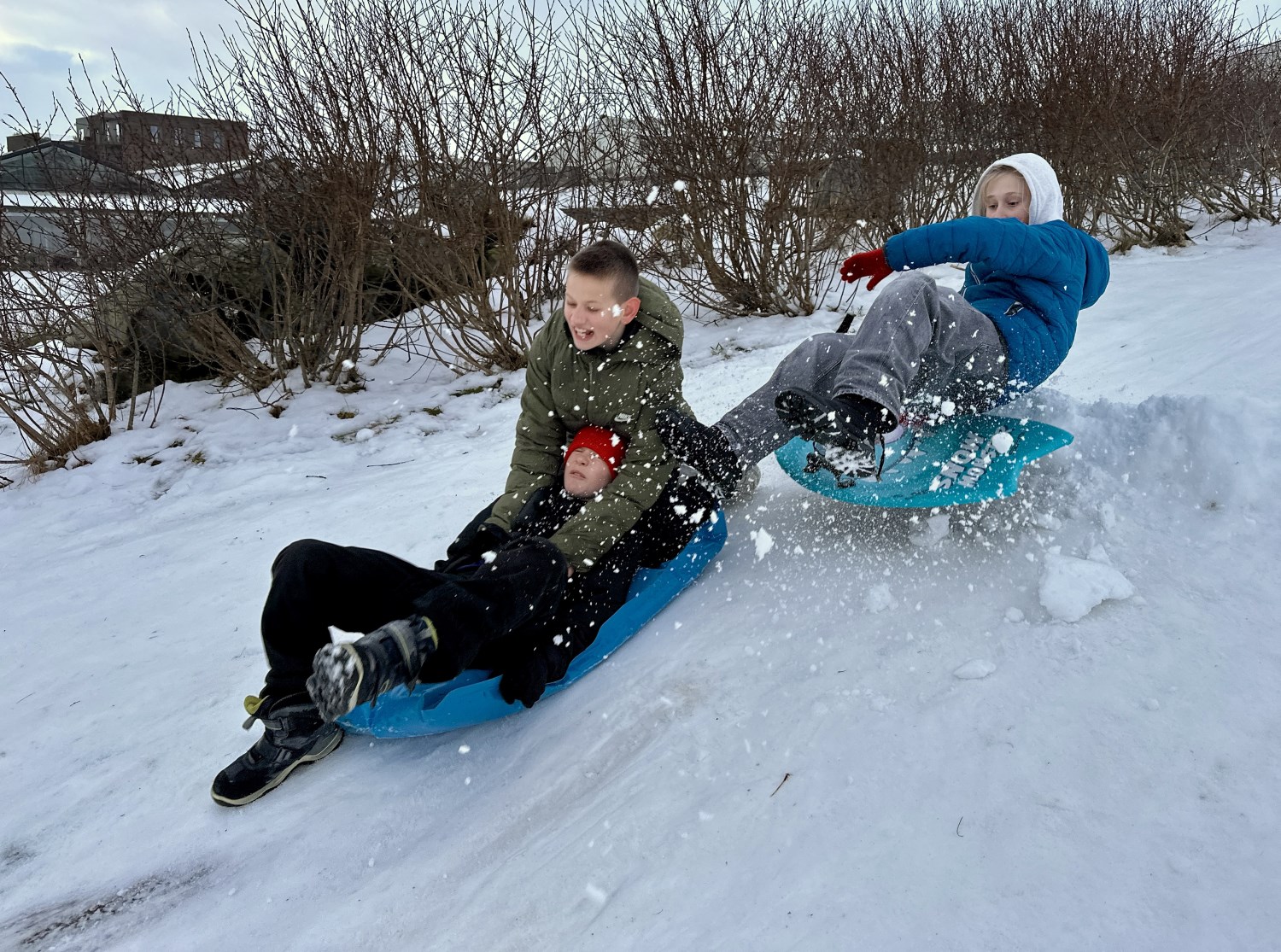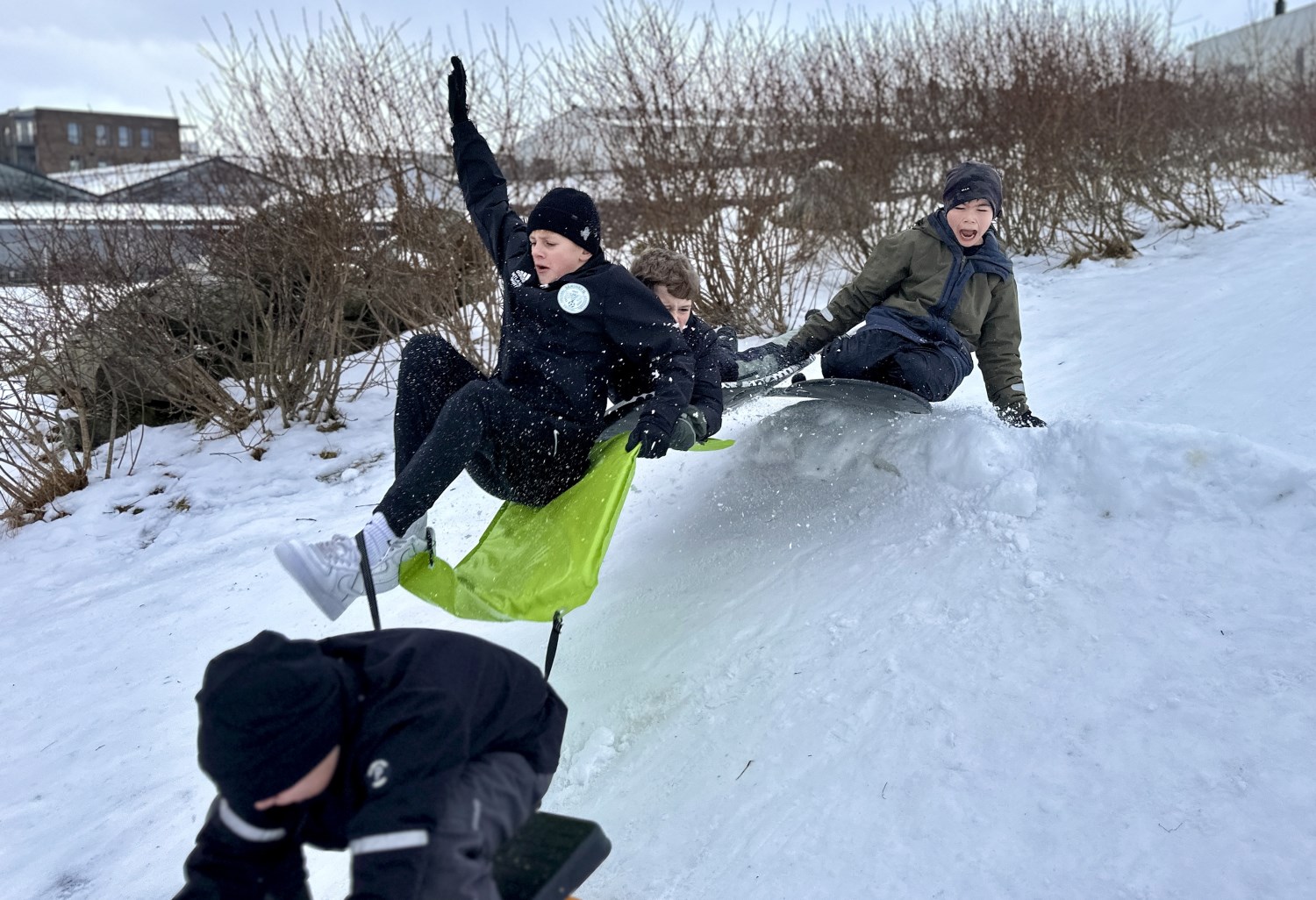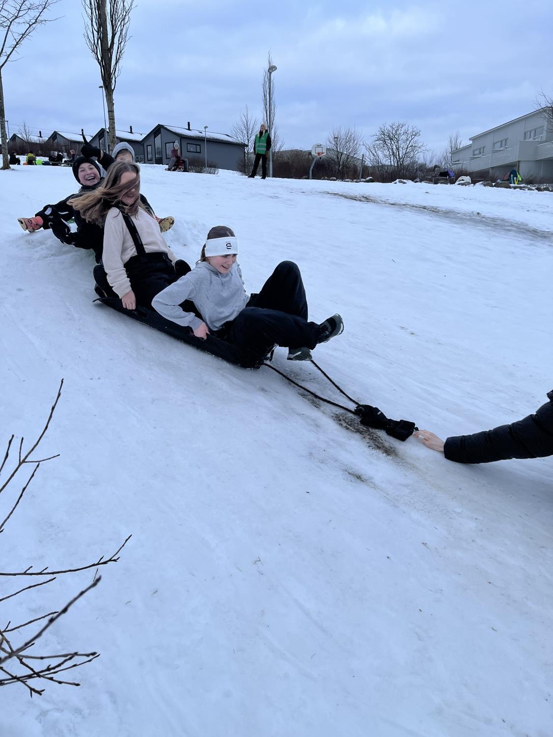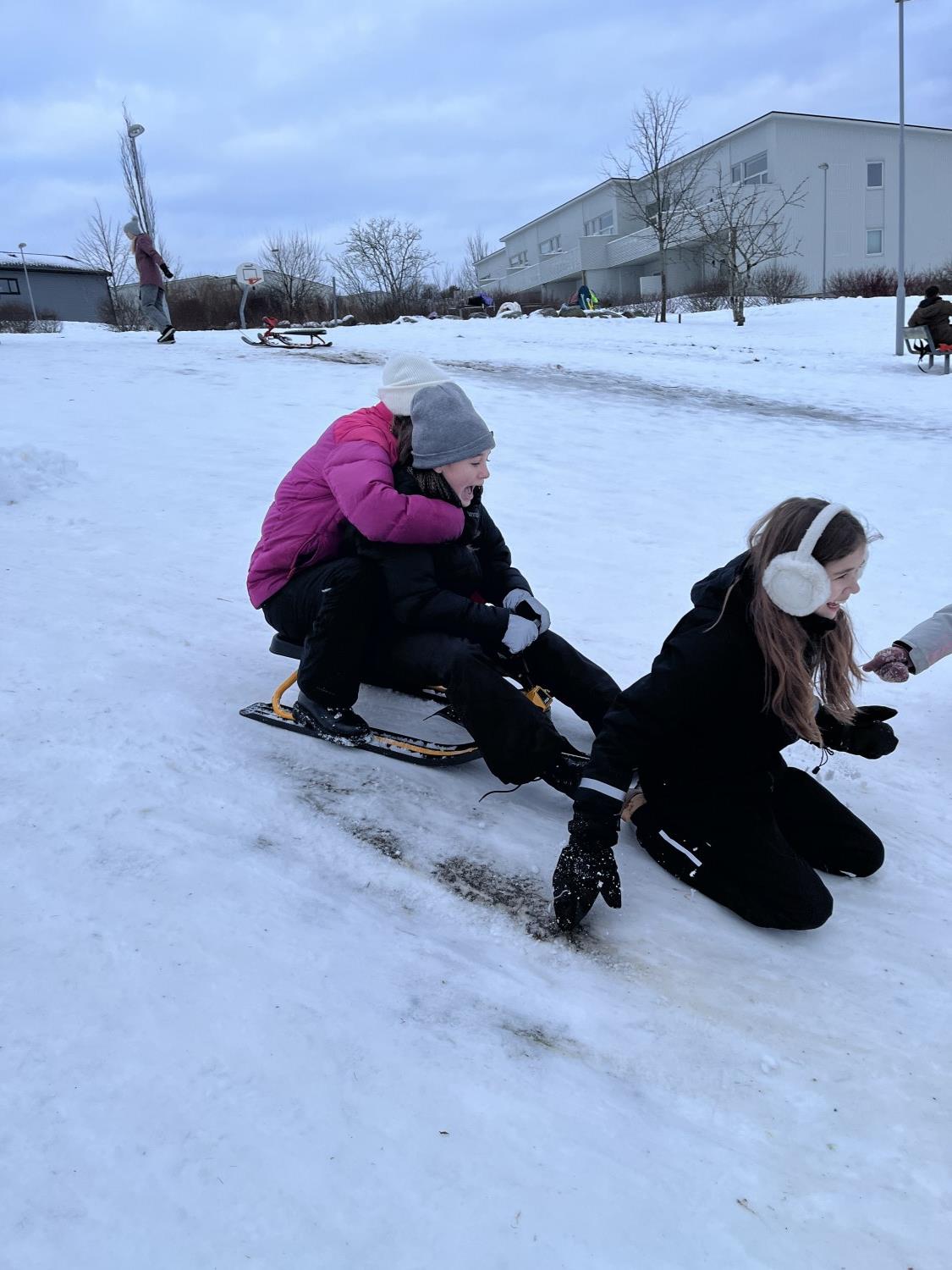 Kjekt å se kreative "tog"løsninger, modige og glade elever. Aking er gøy og en god treningsform!