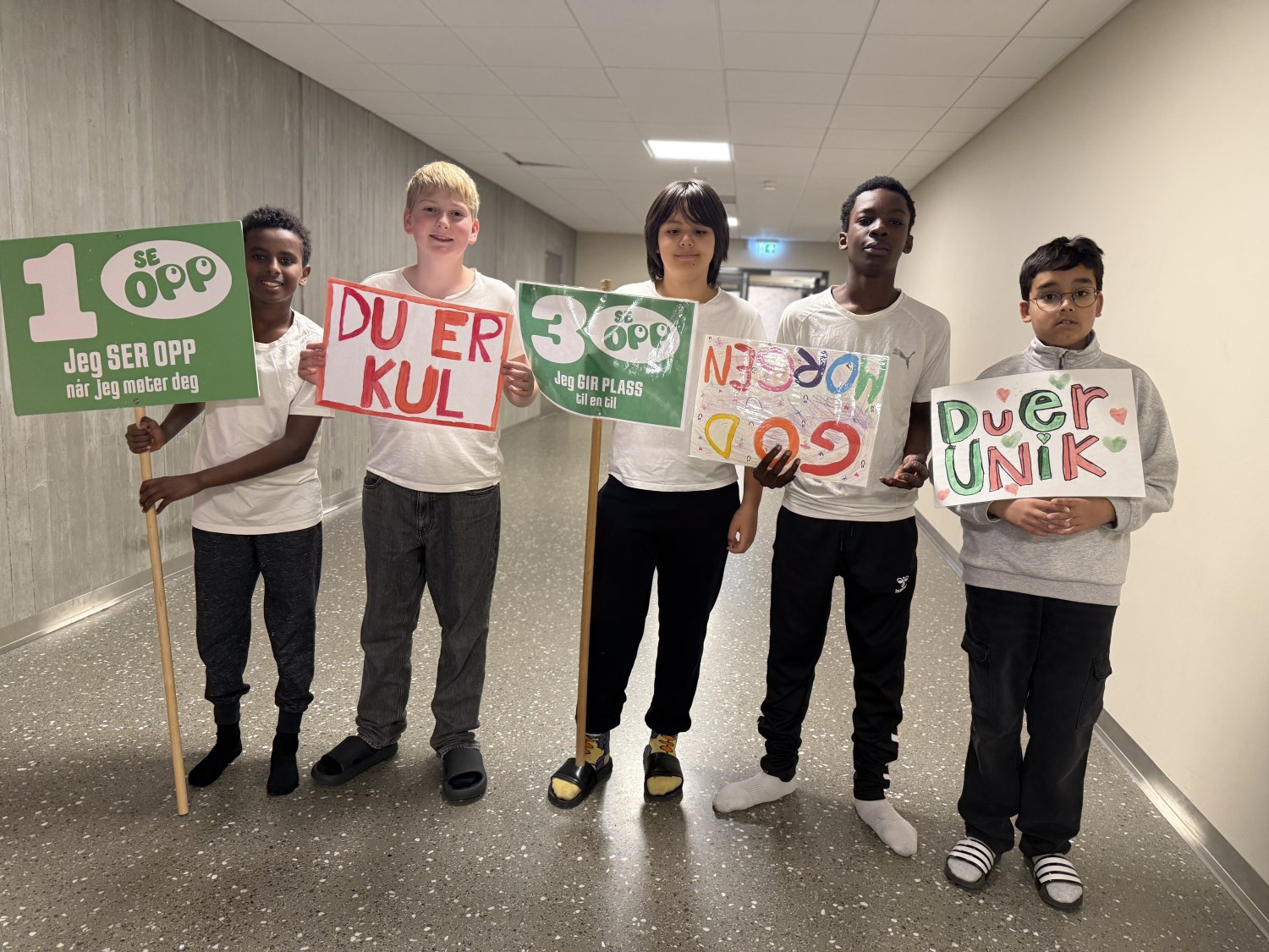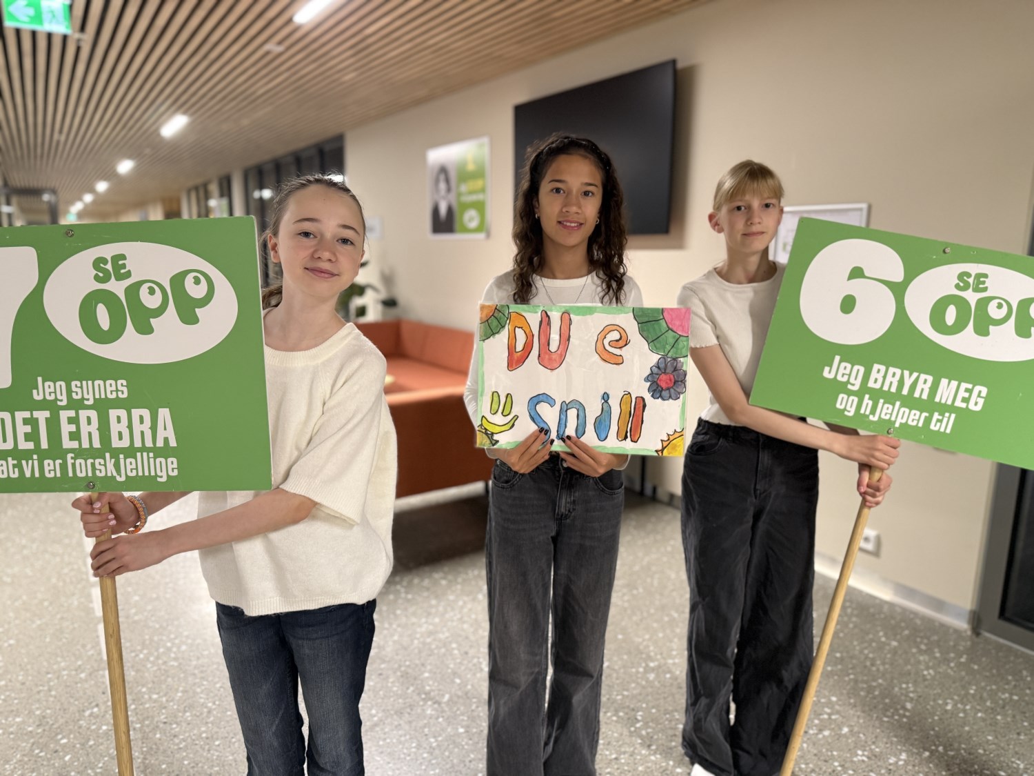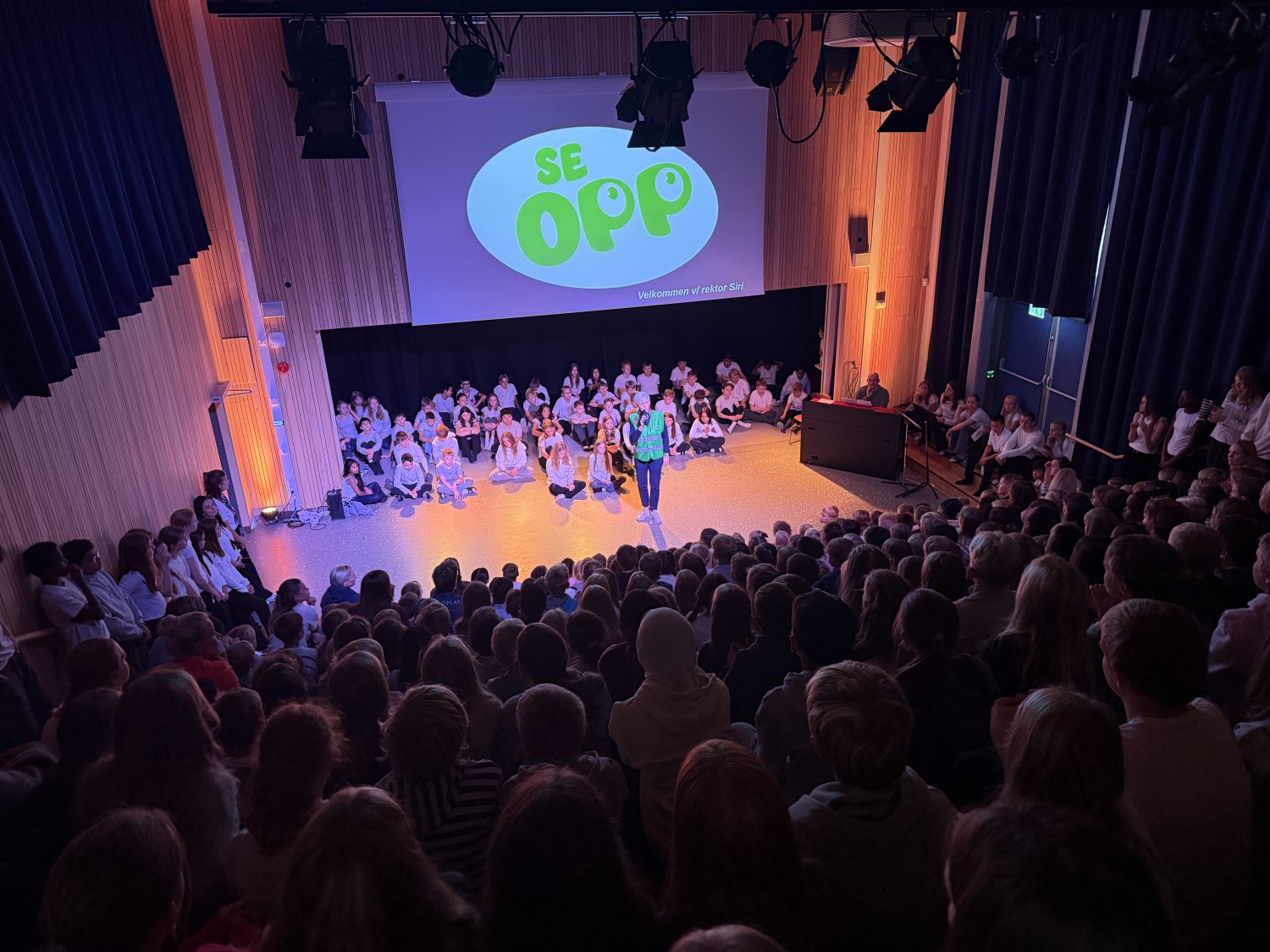 Temaet for samlingen var: "Jeg ser opp når jeg møter deg". 7.trinn har vært på leirskole og fortalte om hvordan SE OPP var med på å prege leirskolelivet på en positiv måte.