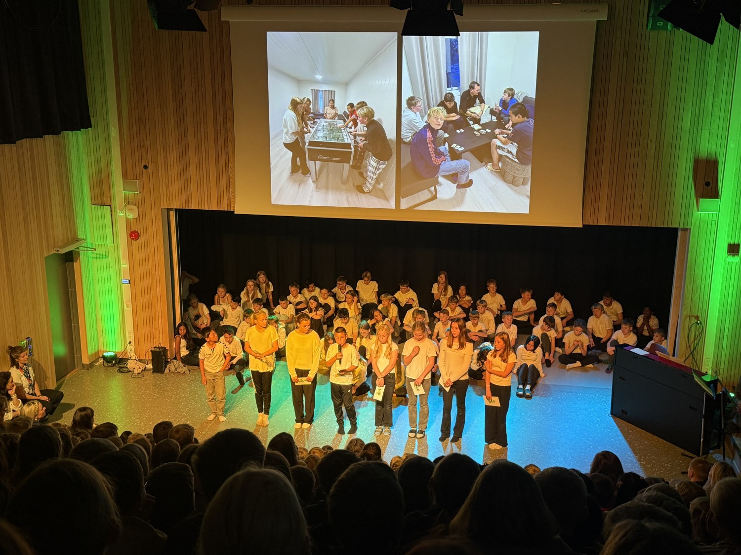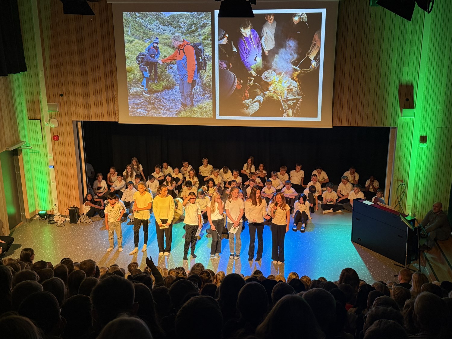 Det ble vist skuespill fra modige og morsomme voksne, dyktige musikanter spilte inngangsmusikk, BLIME-dansen ble vist på skjermen og 7.trinn avsluttet samlingen med flott fellessang. Kjekt å være i gang med samlingene.