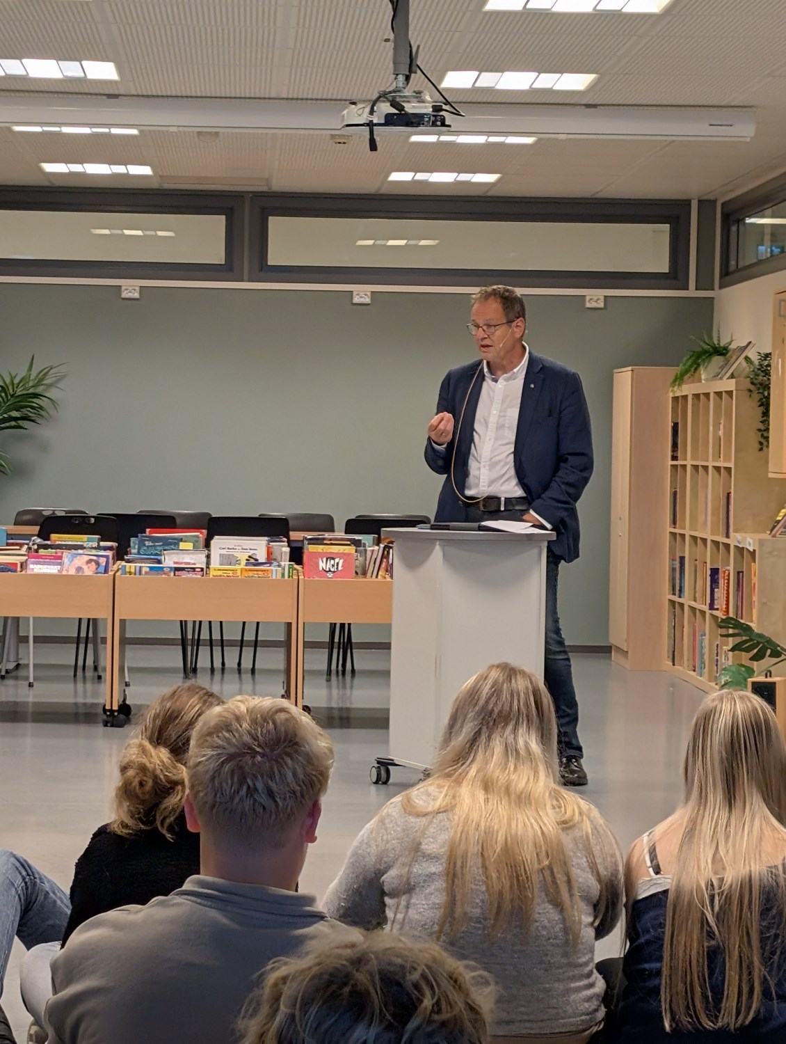 I samband med tverrfagleg prosjekt med tema val hadde 10. trinn i dag besøk av ordføraren i Klepp kommune, Kjetil Maudal. Han snakka mellom anna med ungdommane om demokrati, valet, oppbygginga av Stortinget og regjeringa, samt om at det er viktig at me bruker stemmeretten. Ungdommane lytta og stilte spørsmål. Avslutningsvis song alle bursdagssong for ordføraren som vert 60 år i morgon.