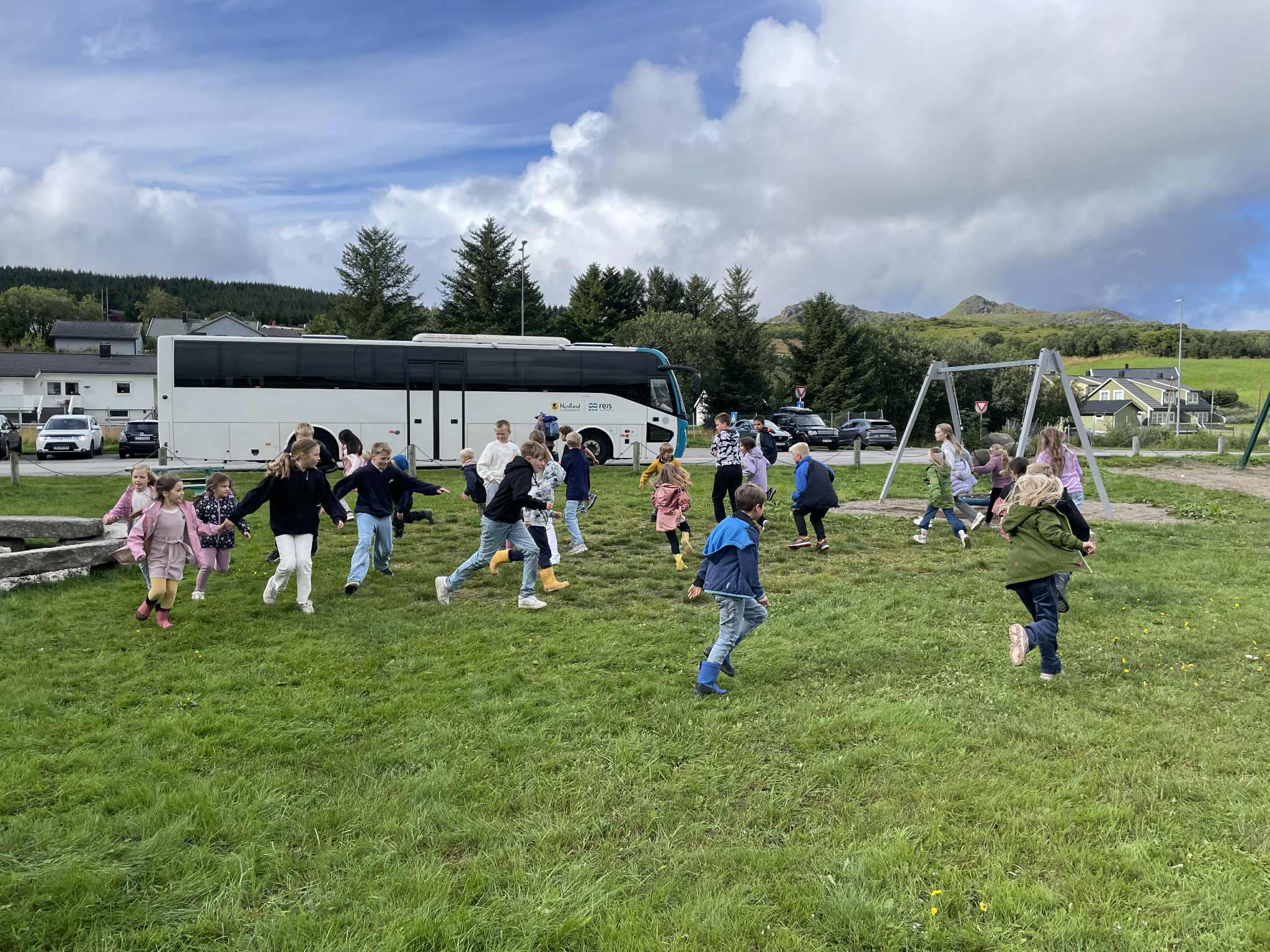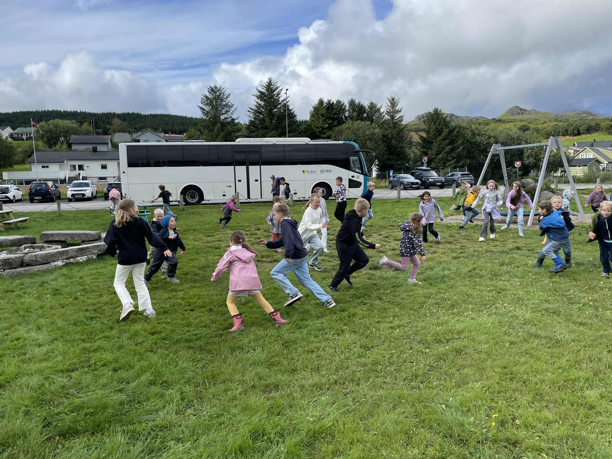 På Bøstad skole er 6. klasse fadder til 1. klasse. Vi har brukt et år på å bli kjent. Det er stor glede hver gang vi møtes. Her lærer 6. klasse regelleker til 1. klasse. "Haien kommer", eller "Tannbørsten kommer", som ungene nå kaller leken.