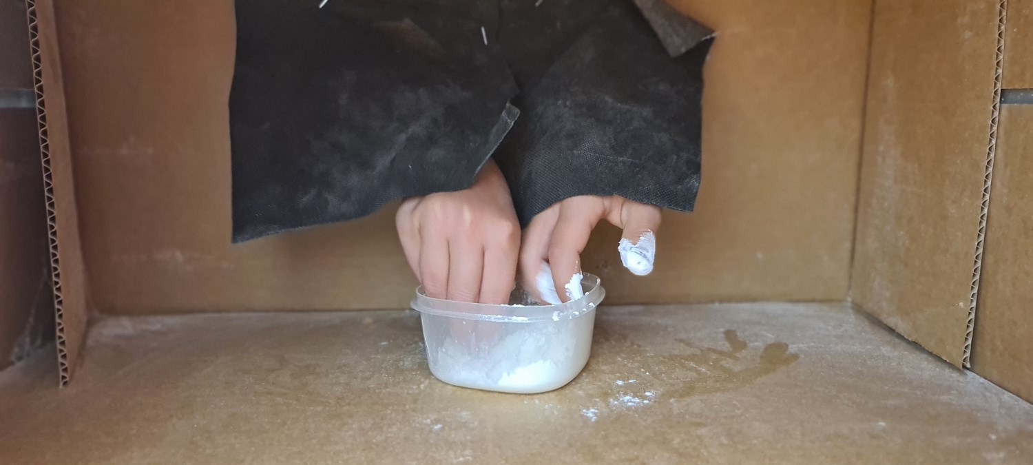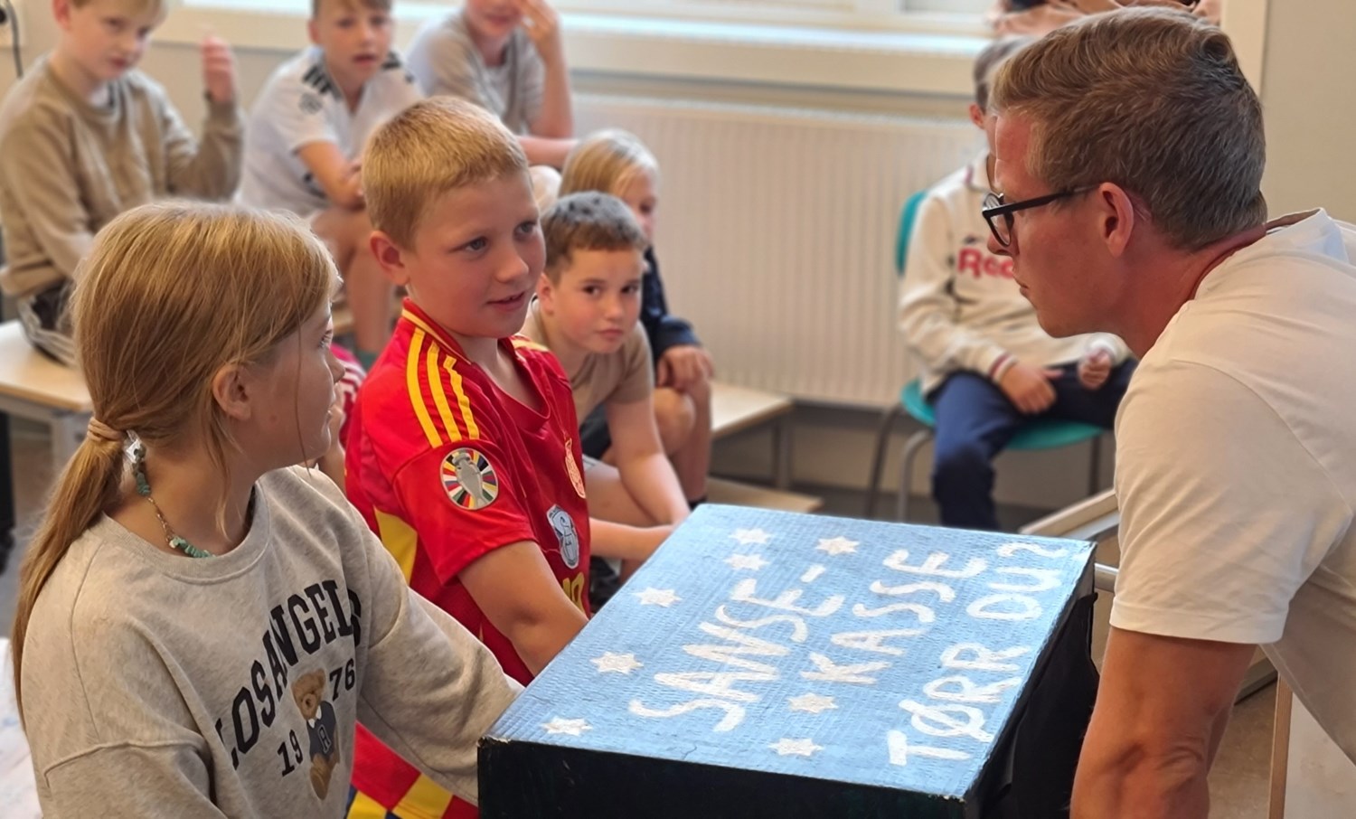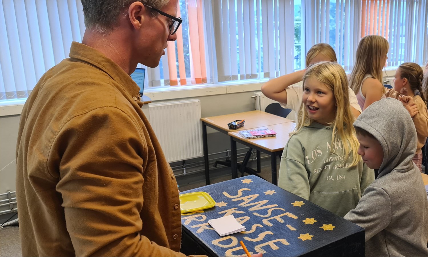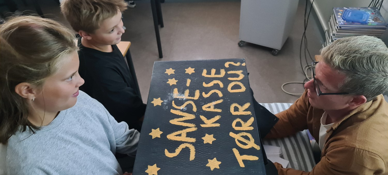 Sammen med læringspartner stakk vi ei hånd hver inn i den svarte sansekassa. Hva kom vi til å ta på? Kom vi til å klare å fortelle hvordan det vi tok på kjentes ut? Ville vi klare å gjette hva det var? Og til sist, ville vi få til å si det riktige ordenstallet på det vi tok på og skrive det på engelsk? Ville vi i det hele tatt tørre å prate engelsk hele tiden, og kun bruke et ord på norsk der vi ikke visste hva ordet var på engelsk? Her var det mye å tenke på samtidig..., men gjett hva? ALLE KLARTE ALT SAMMEN!