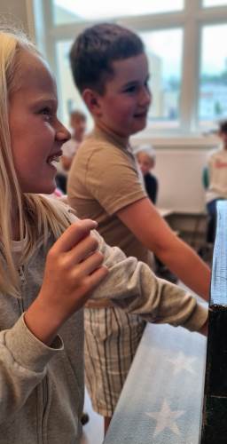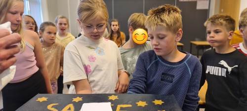Det var ekstra spennende i engelsktimen i dag! Vi brukte sansekasse for å øve på ordenstallene uten å ane hva vi tok på i kassa...