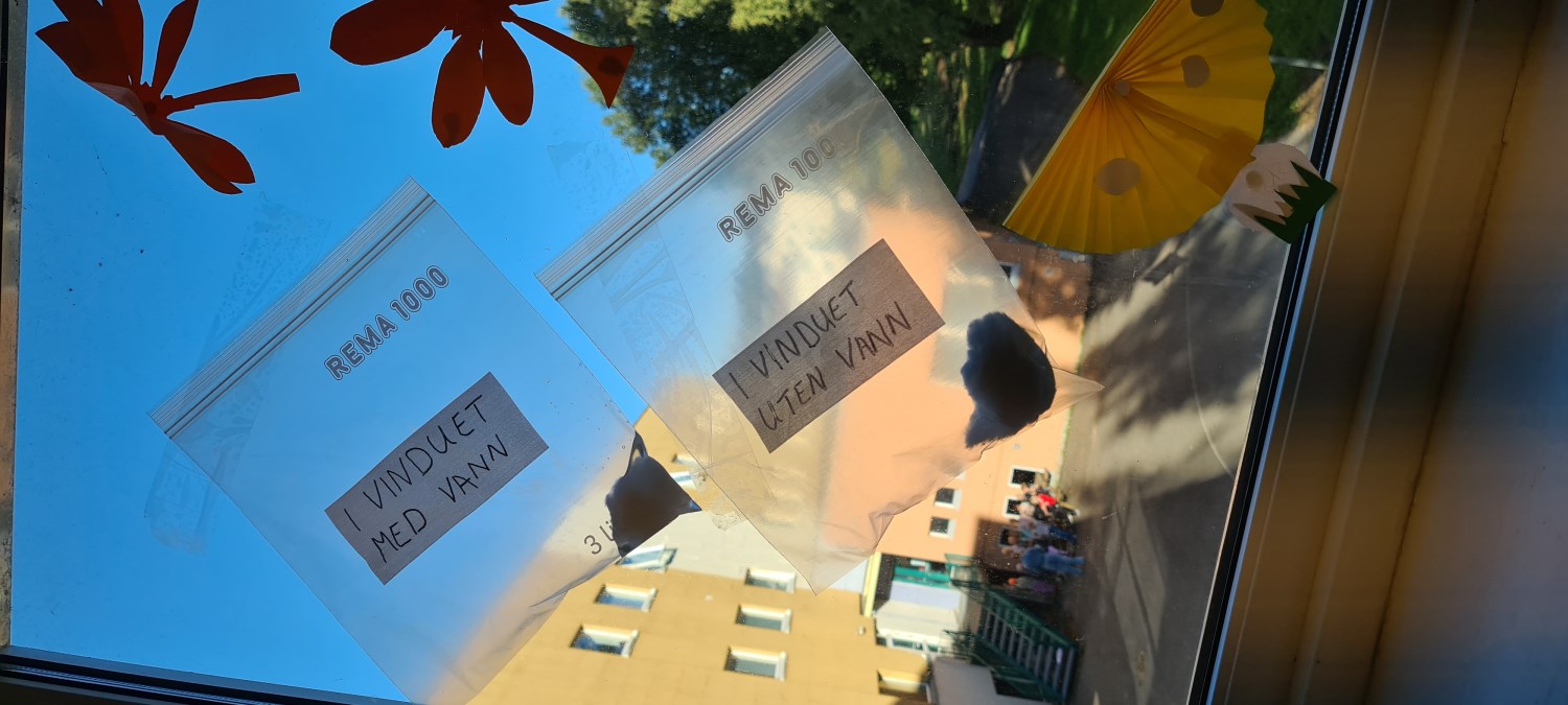 Idet løvet nå har høstfarger på har vi laget Høstvindu i basen vår, og vi har lært om fotosyntesen og om hva som skjer i plantene når klorofyllet "trekkes ned" i stammen. Vi vet noe om både oksygen (O2), karbondioksid (CO2), sollys, vann og produksjon av sukker. Det er spennende med kjemiske prosesser, noe vi skal jobbe mer med i naturfag fremover.