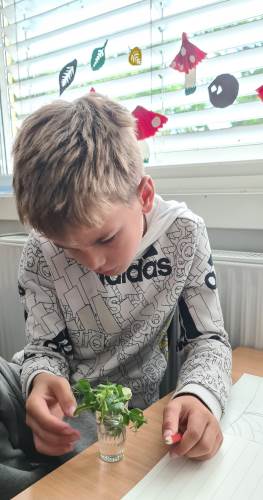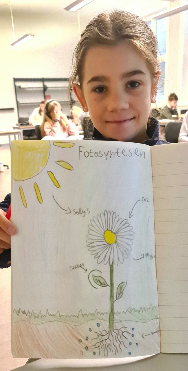 Fra skolestart og frem til nå har vi jobbet med blomstens oppbygning, pollinering, hypoteser og forsøk, fotosyntesen og klorofyll i naturfag.