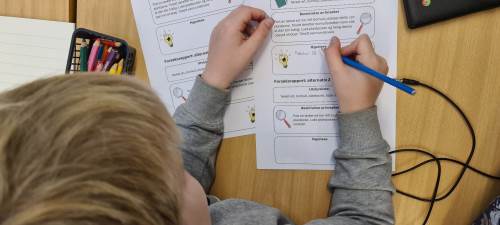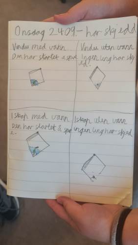 I egen arbeidsbok med egen forside har vi illustrert og skrevet det vi har lært. Det startet med blomstens ulike deler og pollinering. Hvordan og hvor bær utviklet seg fra blomst til bær ble undersøkt, og vi koste oss med bær og vaniljesaus; Naturen gir og vi får.