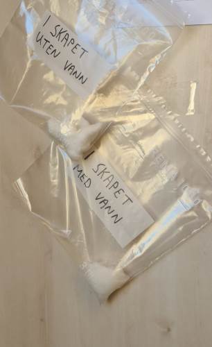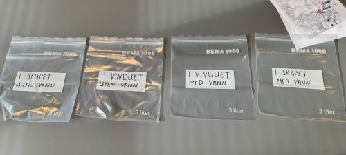 Vi gjorde forsøk med en tørket ert som ble lagt på en bomullsdott i en zippet plastpose; noen med lys og vann, lys uten vann, og i mørke med og uten vann. Vi lagde hypoteser og fulgte forsøket gjennom flere uker. Noen av hypotesene (hva vi trodde kom til å skje) stemte. Andre stemte ikke. Hva som skjer videre nå som spirene har blitt til planter som står i kopper med jord i både lys og mørke, gjenstår å se.