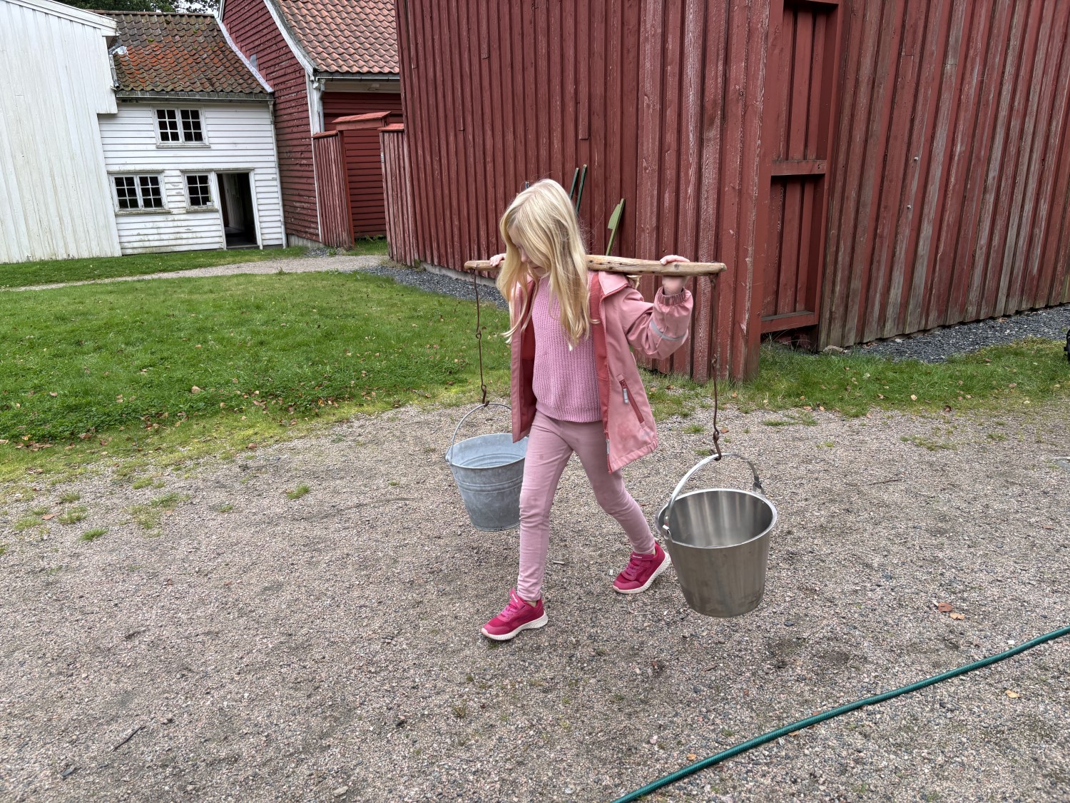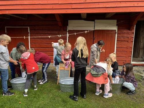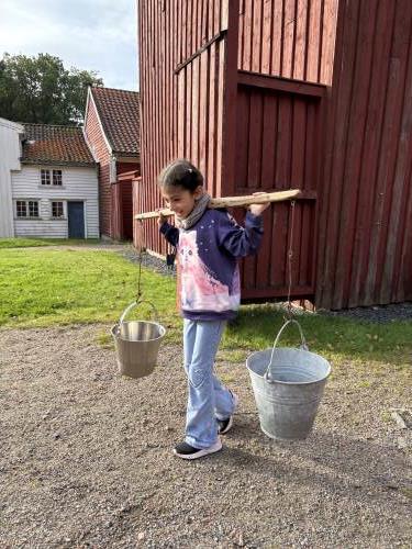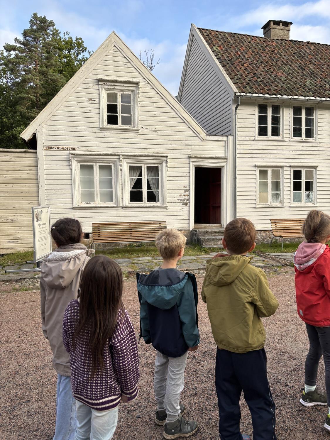Som en førinnlæring til «vi i verden»-temaet, besøkte vi Vest-Agder museet på Kongsgård rett før høstferien. Der fikk elevene et innblikk i hvordan det var å leve i Kristiansand i gamledager.