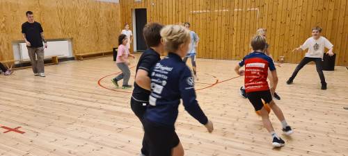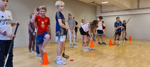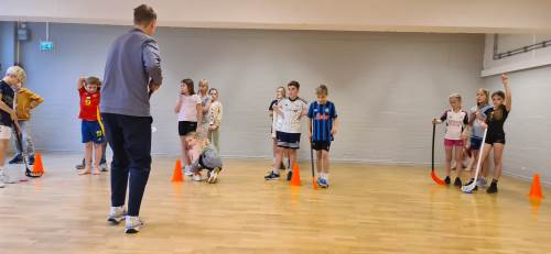 Iherdig innsats og høyt aktivitetsnivå med innebandy og basketball i kroppsøving.