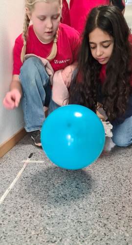 I lunsjen fikk vi frukt og brus, og noen tok seg en luftetur ut før bygging av en ballongbil av lego tok til. Målet var å få bilen til å bevege seg ved hjelp av kraften fra den oppblåste ballongen. Lettere sagt enn gjort, men de fleste bilene beveget seg litt i alle fall.