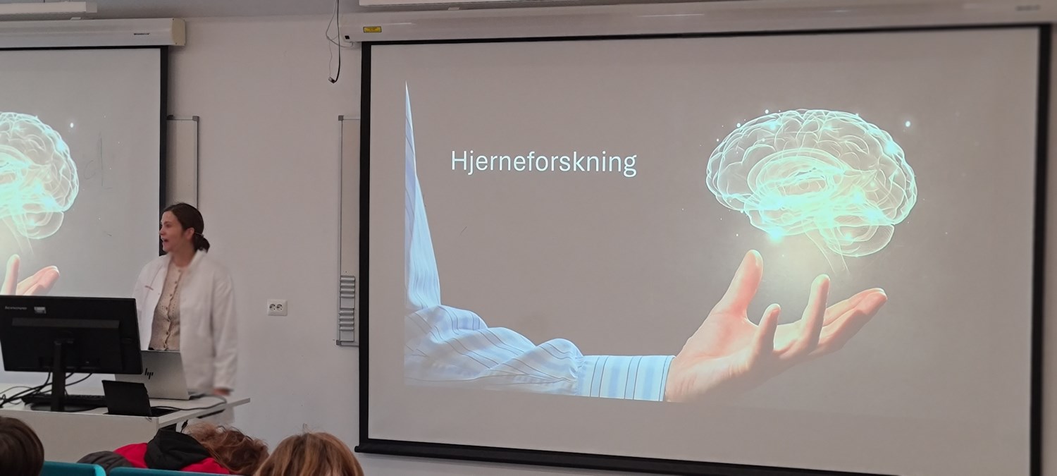 Under foredraget om hjerneforskning fikk vi høre om nevroner, og at vi har så mange i hjernen at vi knapt får til å si antallet. Vi opplevde også hvordan hjernen kan "lure oss" til å se farger når de egentlig ikke er der...