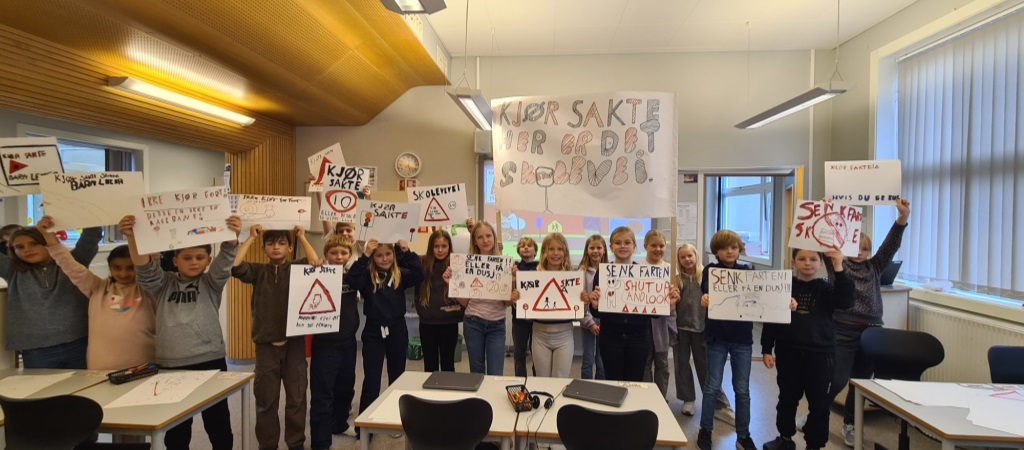 Onsdag forberedte elevene på femte seg til trafikkaksjonen 13.11 i regi av FAU.