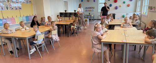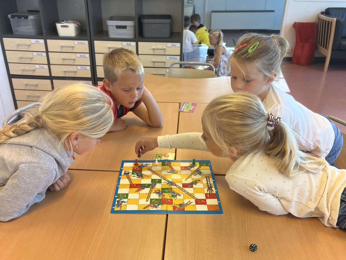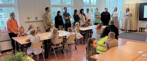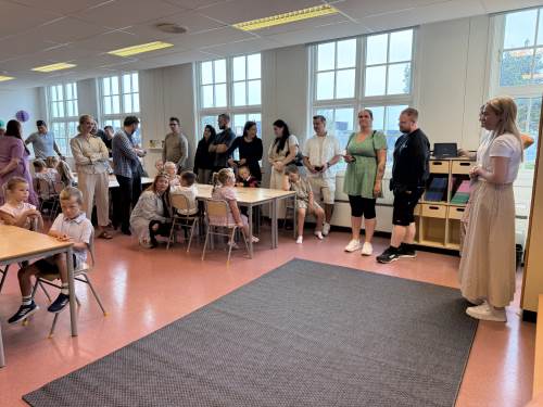 Me har lært oss omgrepa «høgast, lågast, færre og flest» i matematikk og har byrja å snuse på pluss og addisjon. Stasjonsundervisning er favoritten til både born og vaksne, og her klarer me også å bevara den gode leiken, som me veit er eit veldig viktig element i kvardagen til dei yngste elevane.
