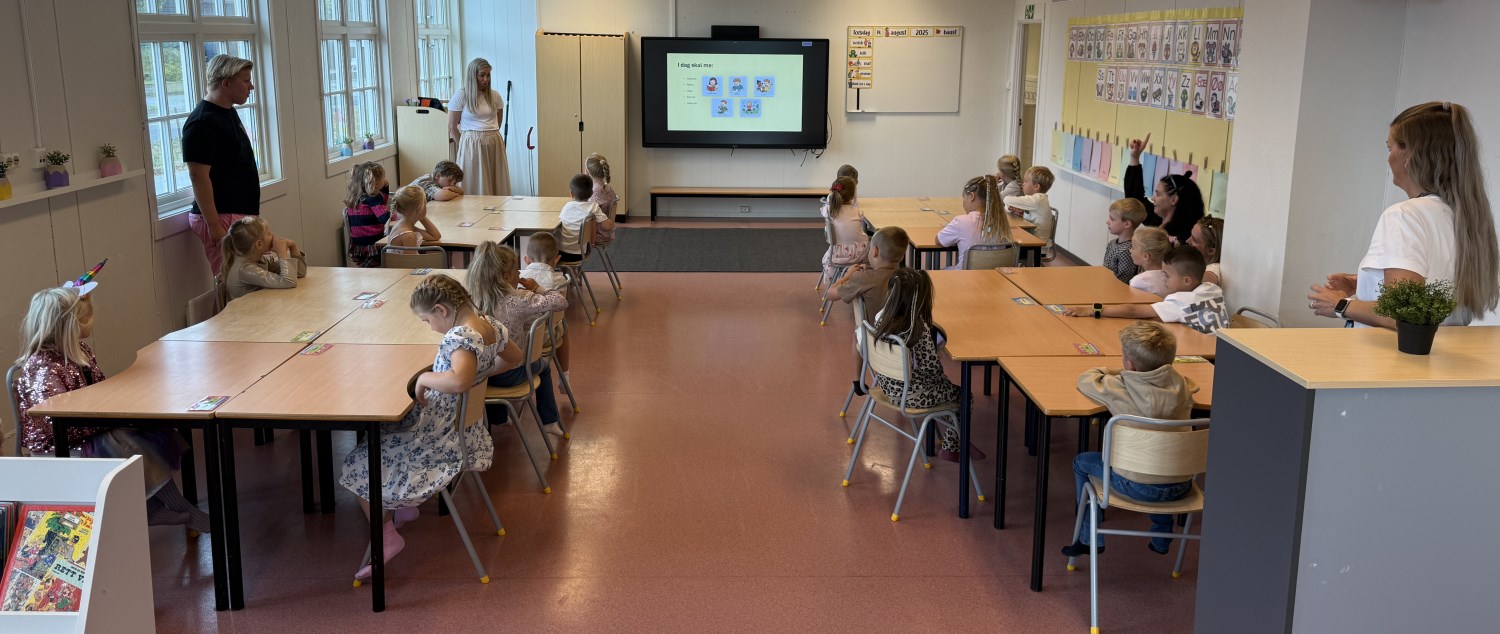 Me ser skikkeleg fram til dette skuleåret, og elevane er allereie godt i rute med rutiner, leik og læring. Ein skikkeleg lærevilleg og god gjeng.