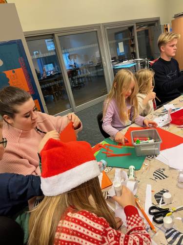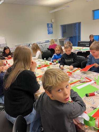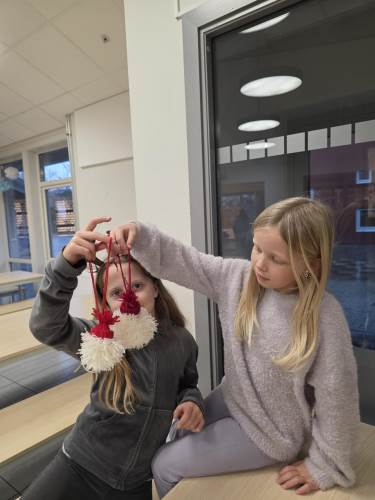Juleførebuingane er godt i gang på SFO! Barna lagar pynt, syng songar og neste veke vert det pepperkakebaking.