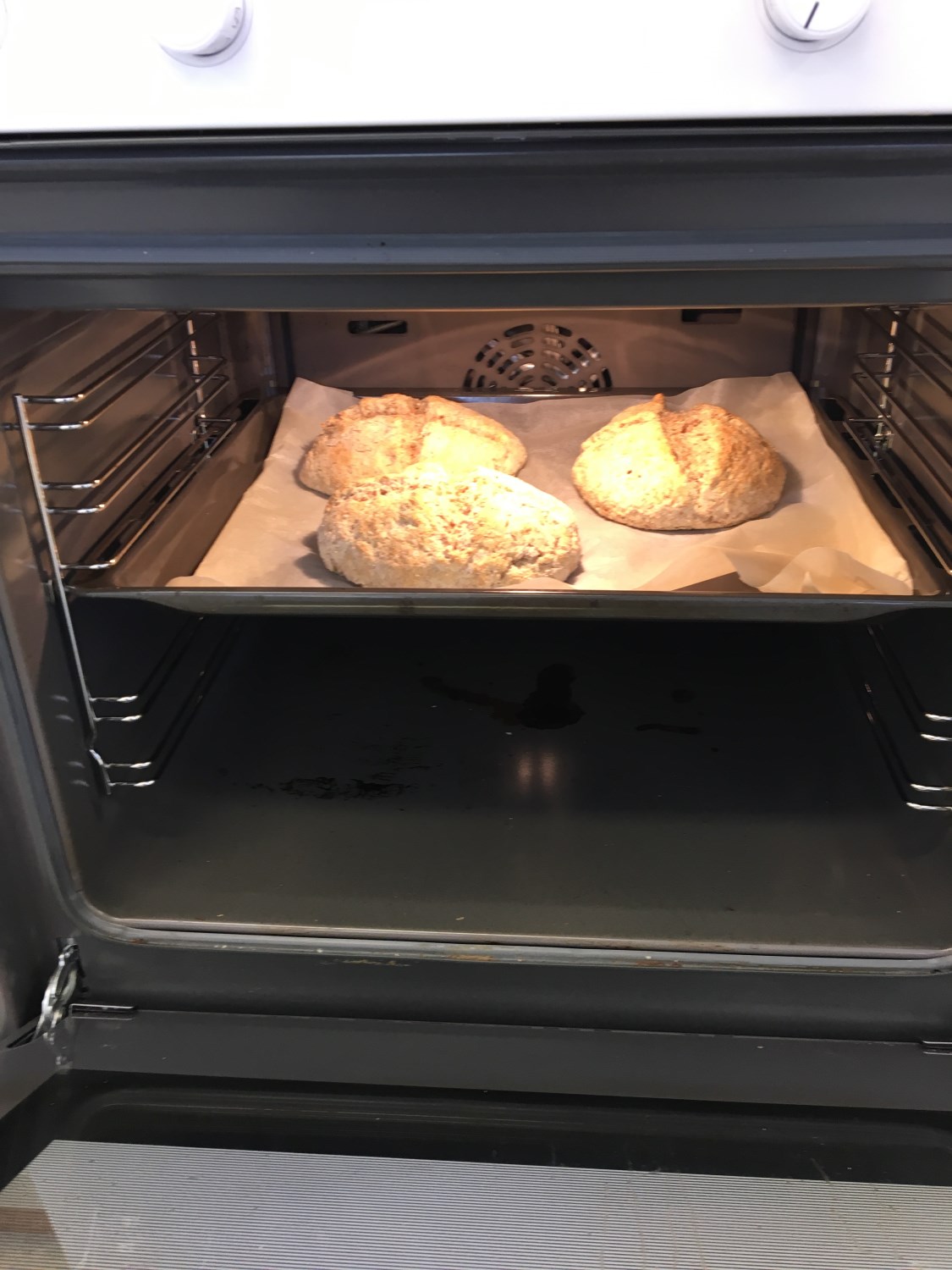 Mens sconesen stod i ovenen ble det ryddet og vasket på kjøkkenet. Da de lå til kjøling ble det snakket om hvor mange deler vi kunne dele en scones inn i, hvor mange deler to sconeser ble o.s.v. Vi jobbet med hele tall, todeler, firedeler, åttedeler og sekstendedeler.