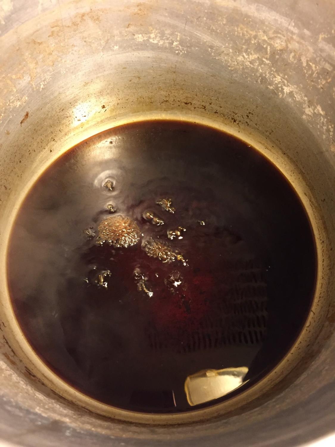 Etter noen timer med innkoking av sevje til sirup sitter du da igjen med i overkant av en halv liter ferdig bjørkesirup.