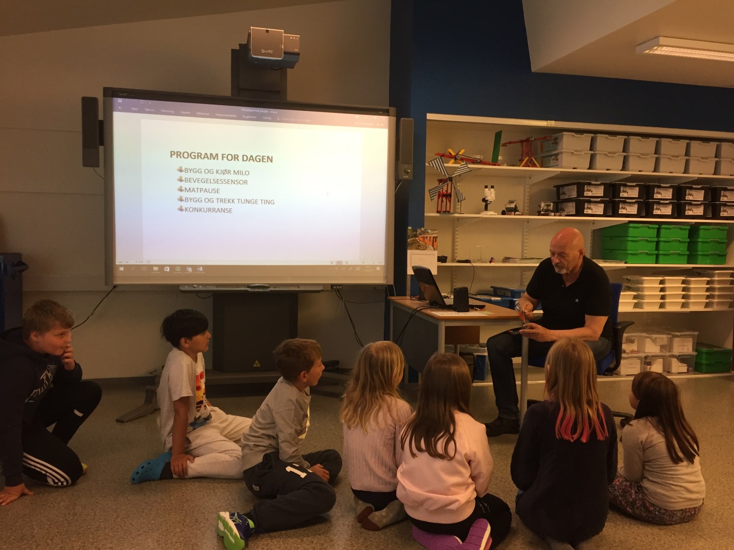 De lærer å kunne bruke motor, tannhjul, trinser og sensor i egen konstruksjon, og lage programmer som styrer konstruksjonen.