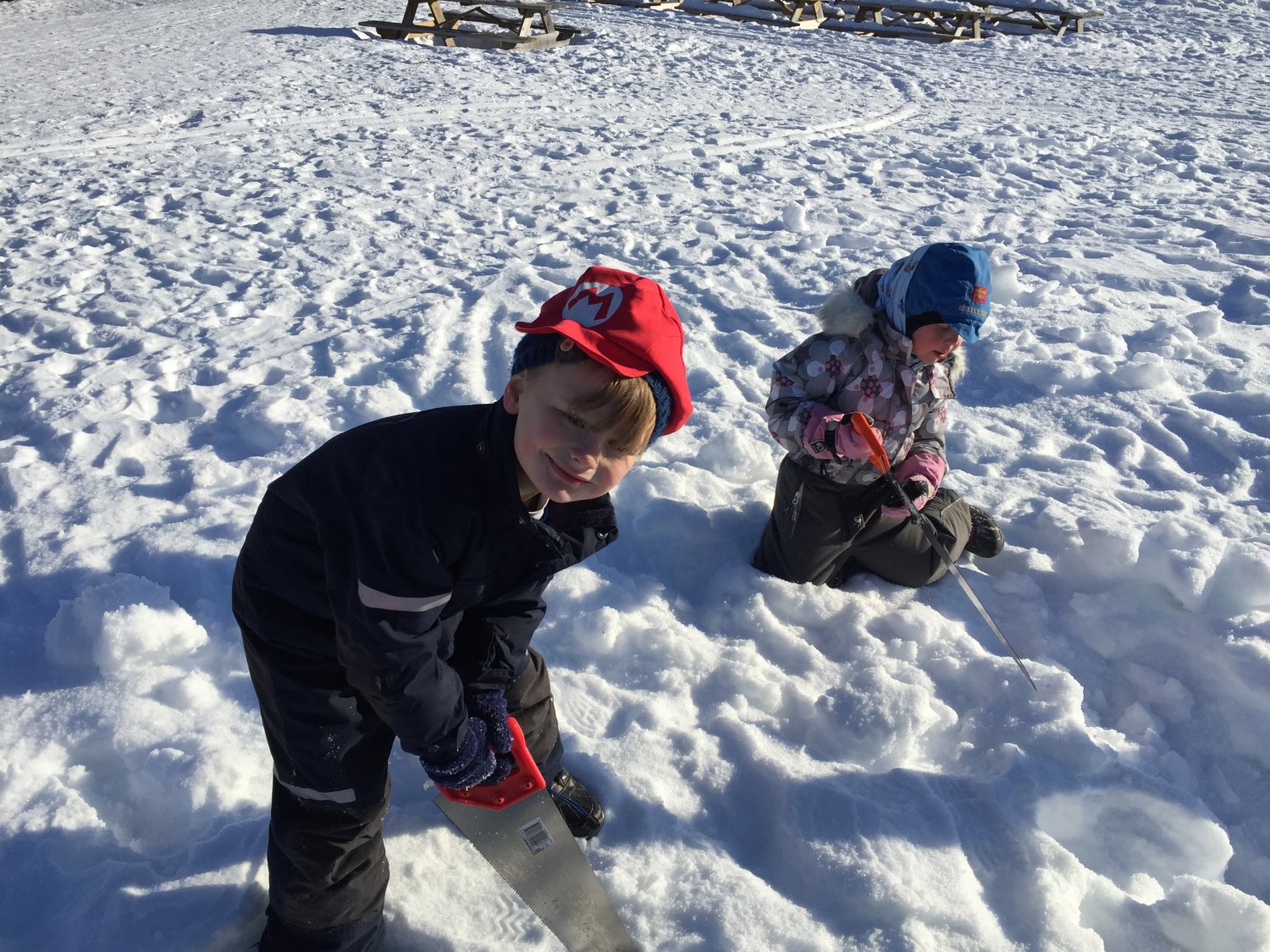 - lære å skjære ut blokker i snø, både med hjelp av ulike spader og sag.